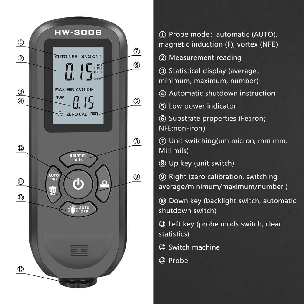 Buy 0-2000UM Thickness Gauge High Precise LCD Digital Automobile Film Thickness Meter Car Paint Coating Thickness Tester Three Probe Modes Units Switching with Data Statistical Zeroing Calibration and Automatic Shutdown Function in Nigeria