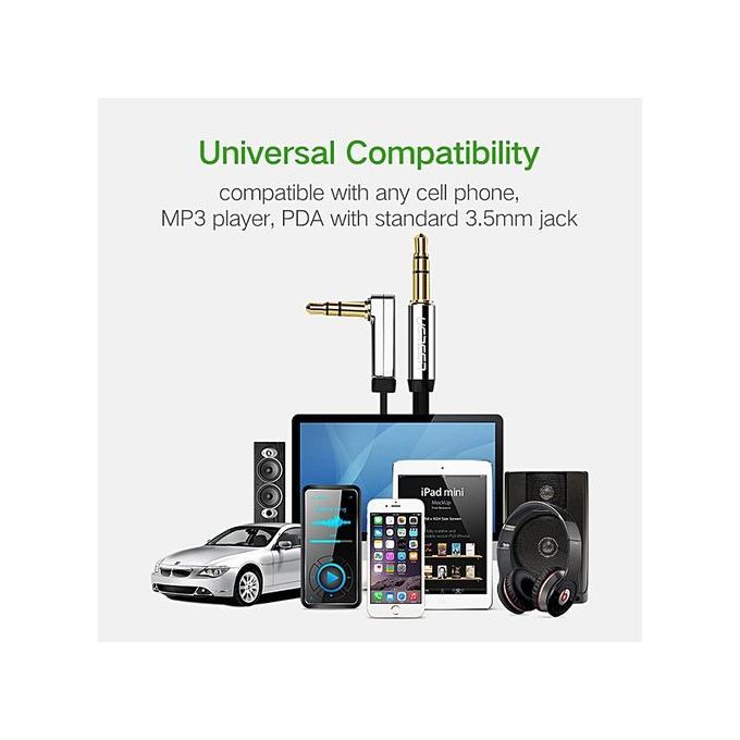USE: Ugreen 3.5mm audio stereo cable 90 degree right angle can easily connect any of your 3.5mm audio port equipped iPod, iPhone, iPad, smartphone, Mp3 player or tablets to your car, portable wireless bluetooth speakers or home stereo, compatible with any digital devices with standard 3.5mm jack audio, like Beats Headphones, iPhone, iPods, Samung Galaxy, Laptop, Tablets, MP3 players, Cell Phones, Car/Home aux stereo, speaker etc.