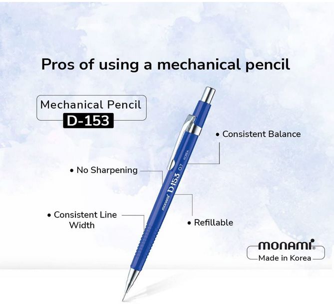 MONAMI MECHANICAL PENCIL: Monami D-153 Mechanical Pencil is the best pencil for artists and is designed for a lifetime of use.