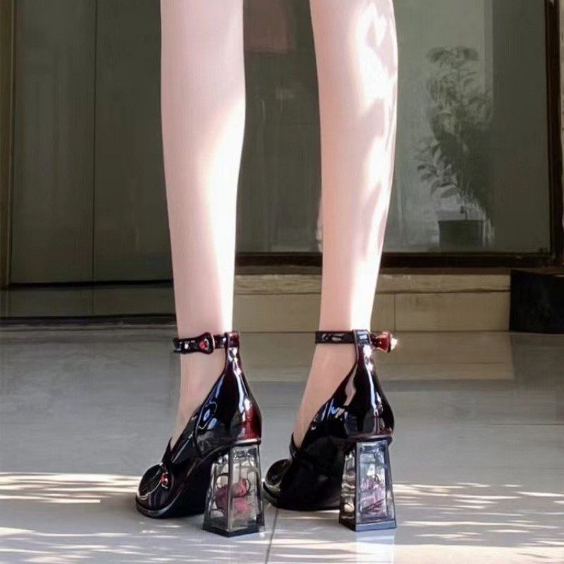 1X Shoes for Women 2023 Brand Transparent Flowers Women's High Heel Summer Casual Sexy Party Pump Women Solid Buckl Female Sandals