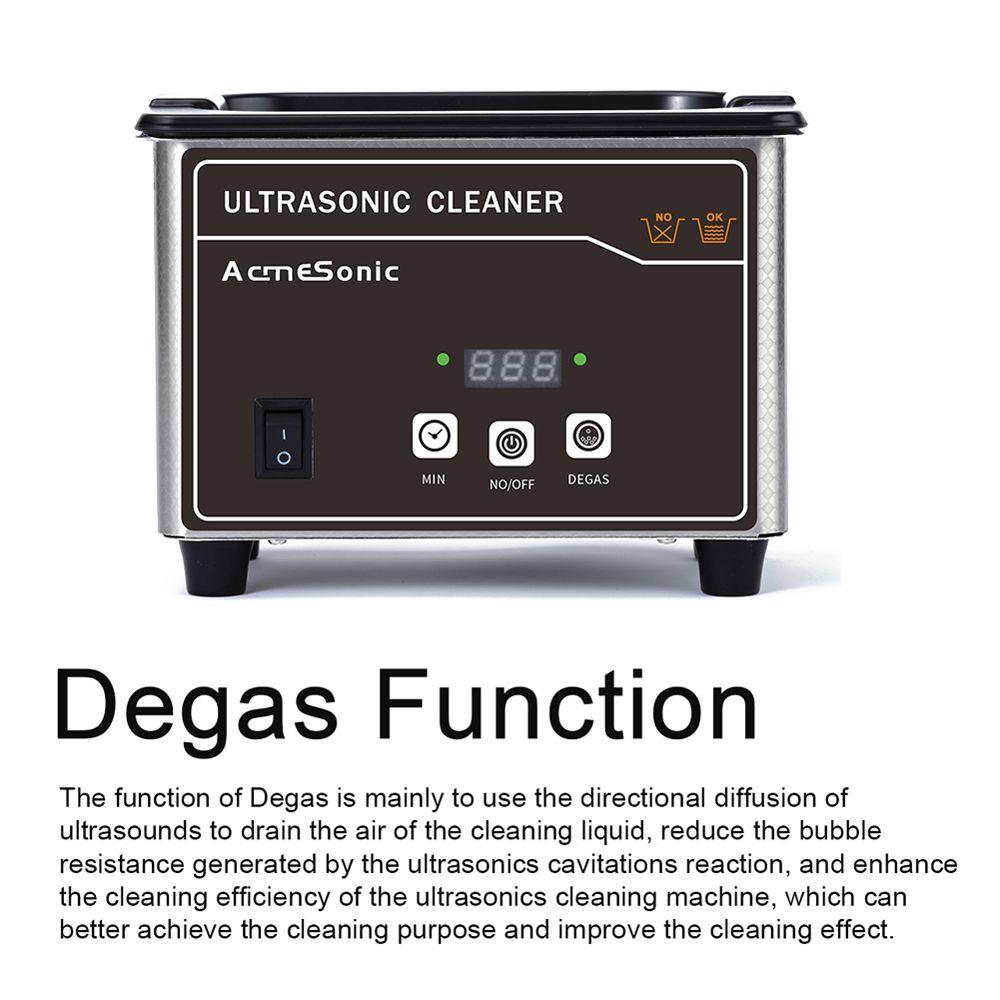 Degas Function: The function of Degas is mainly to use the directional diffusion of ultrasounds to drain the air of the cleaning liquid, reduce the bubble resistance generated by the ultrasonics cavitations reaction, and enhance the cleaning efficiency of the ultrasonics cleaning machine, which can better achieve the cleaning purpose and improve the cleaning effect.