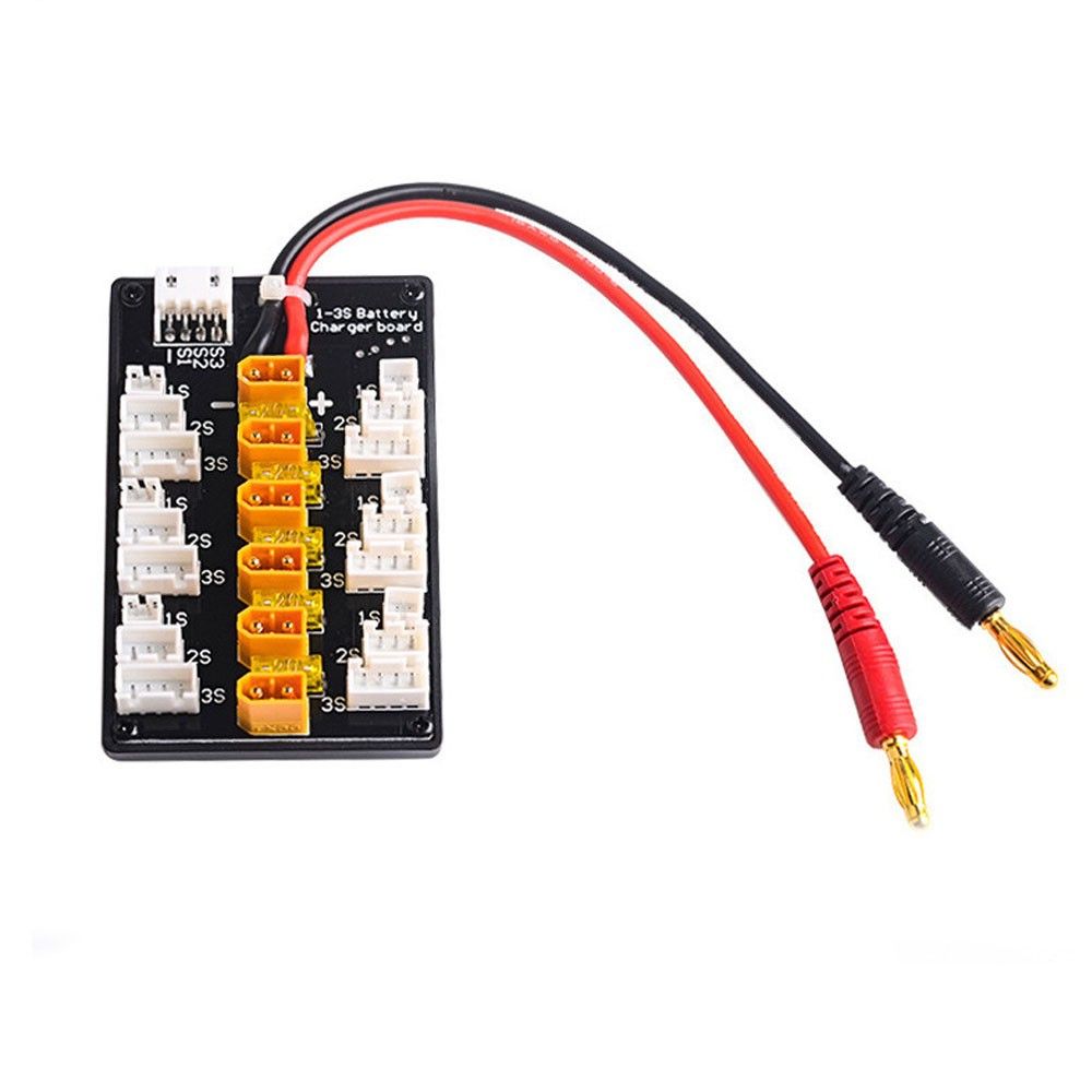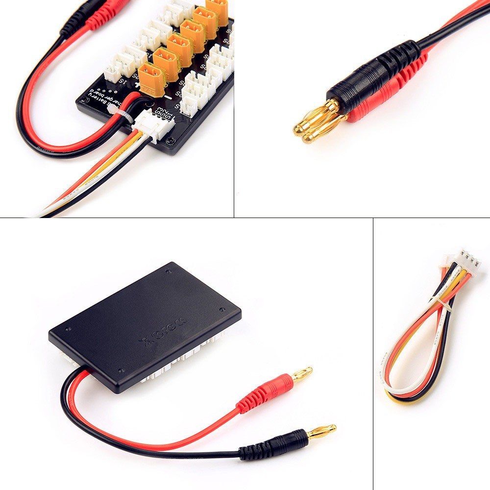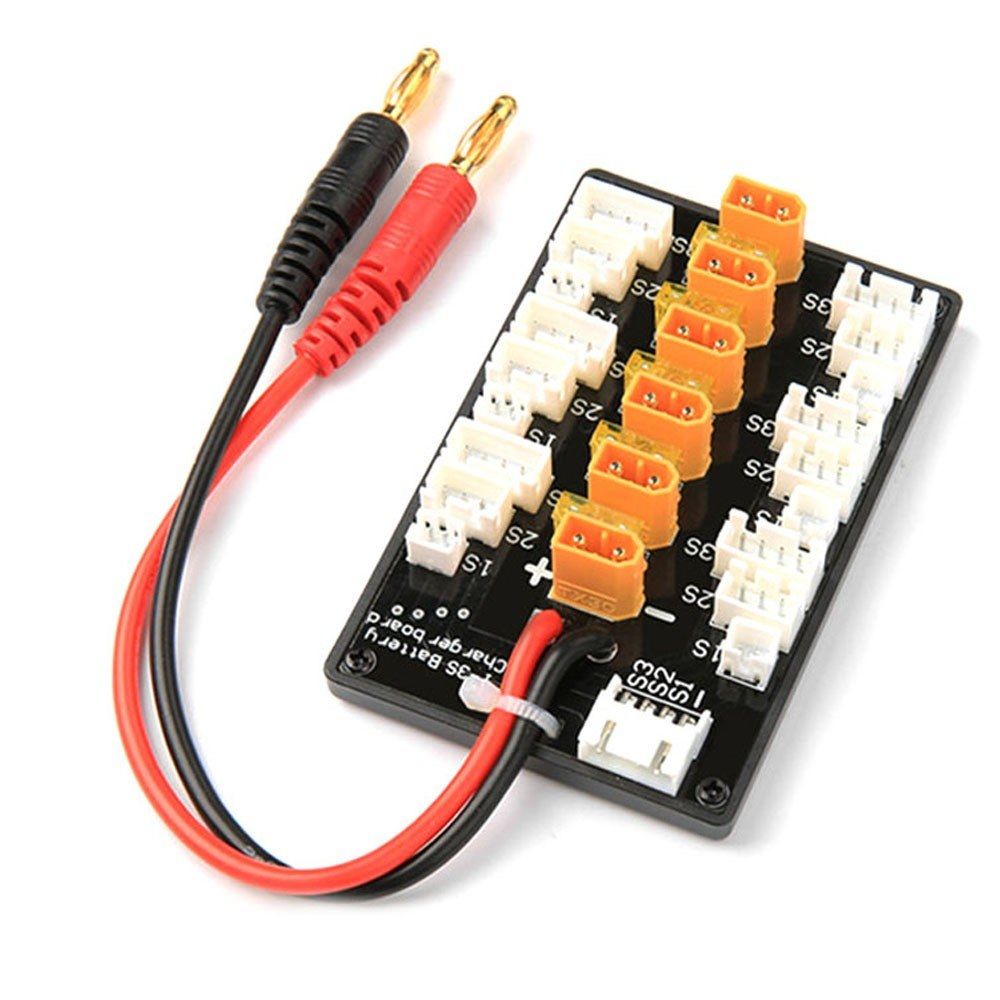 This is a quality 1-3S XT30 plug lipo battery parallel recharging board, which is special designed for balance recharging 6 groups of same type same section quantities 1-3S battery group, can cooperate with common series recharger use like IMAX B6 recharger. It can simultaneously support 5 groups of 1S 3.7V lithium batteries, or 6 groups of 2S 7.4V lithium batteries, or 6 groups of 3S 11.1V lithium batteries for parallel balanced recharging. You can have a try.