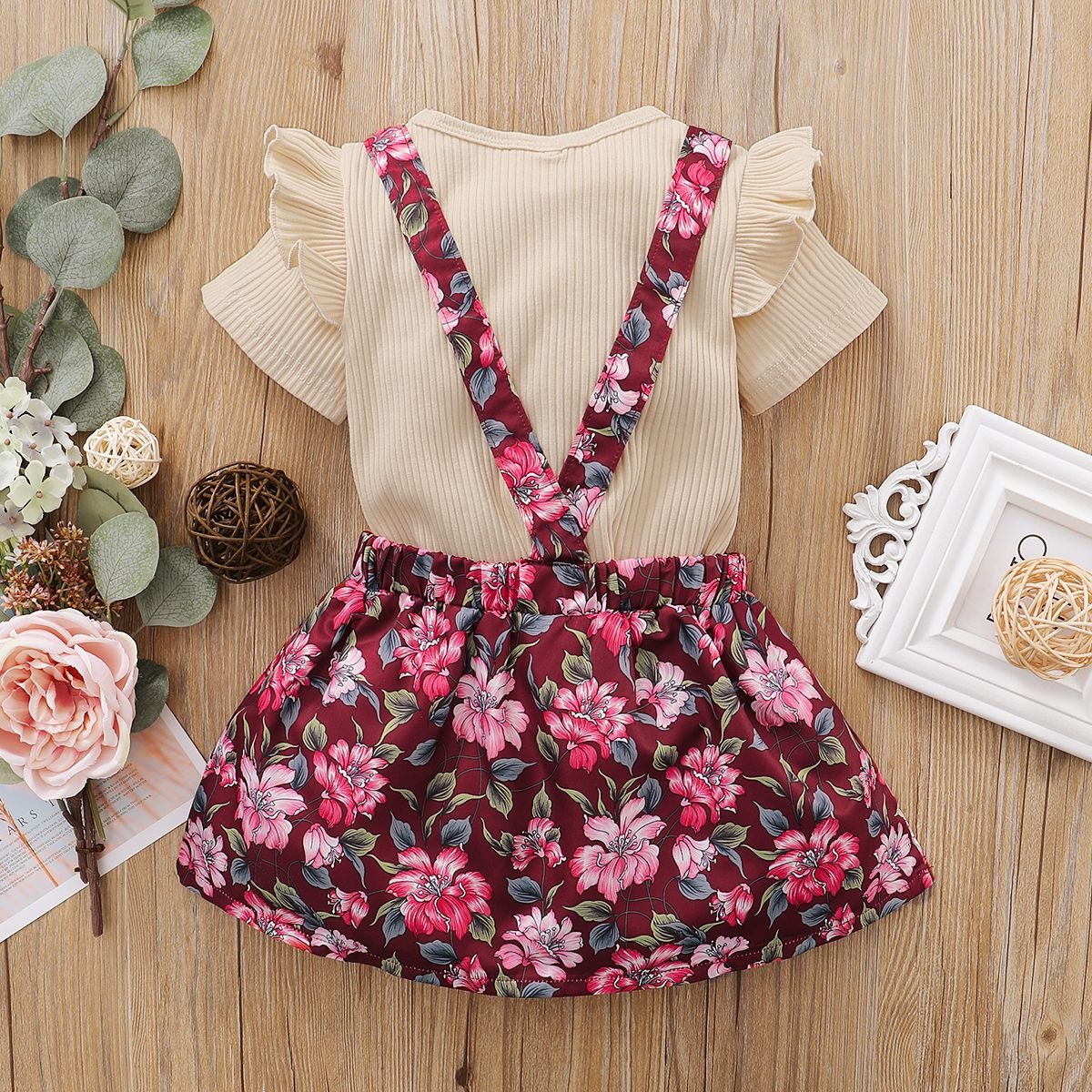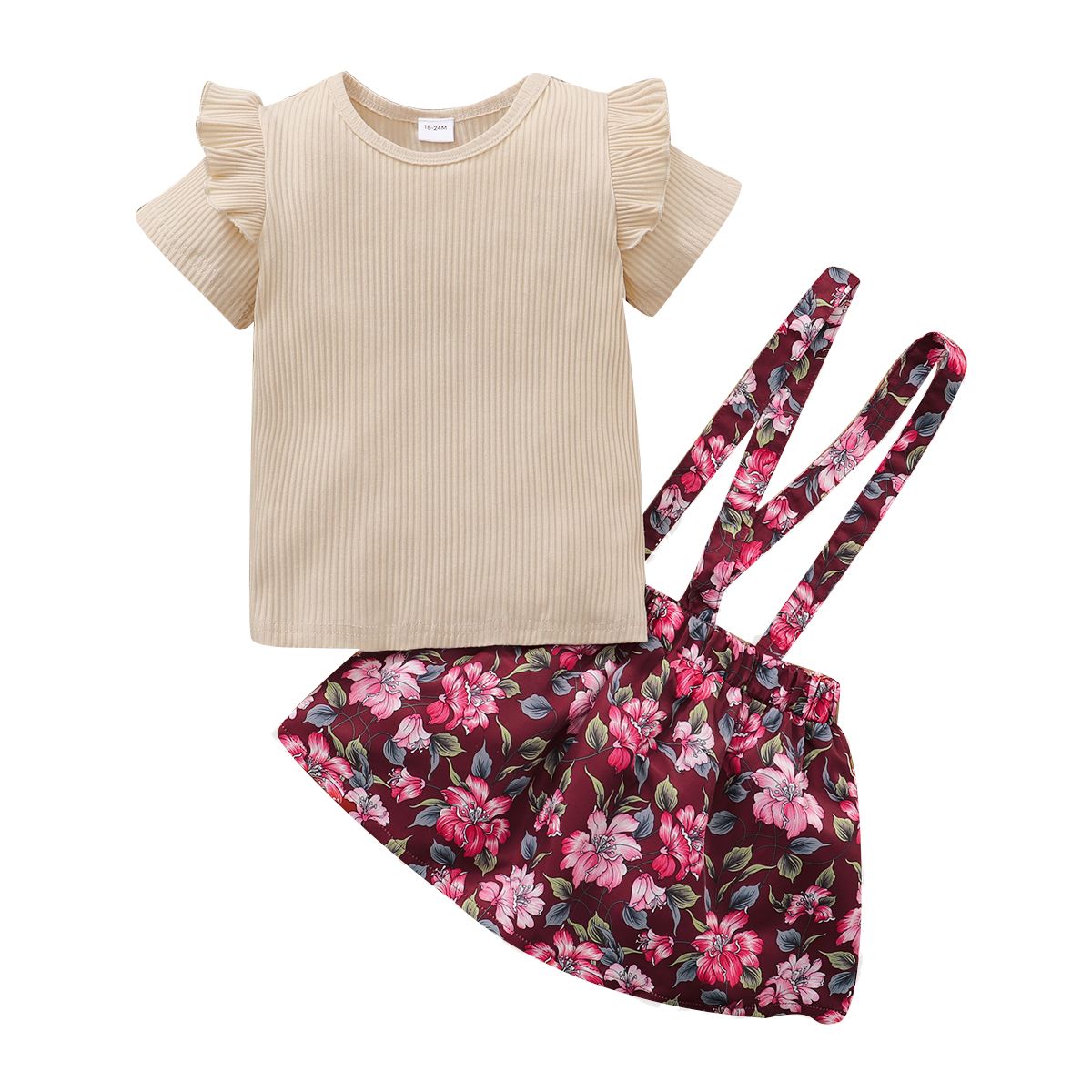 Buy 1-6Y Kid Girls Dresses Ribbed Short Sleeve Blouse Floral Suspender Skirt in Nigeria