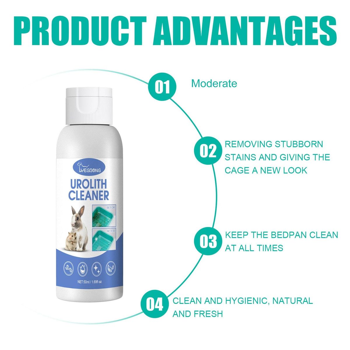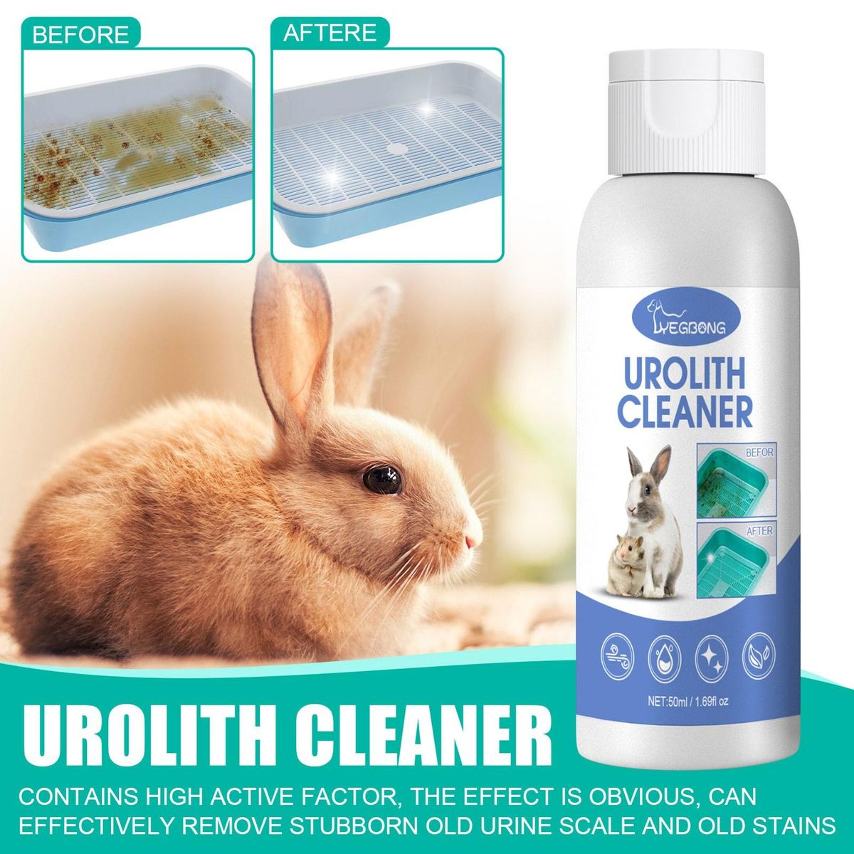 Urolith cleaner can be used to clean the potty of chinchillas, rabbits and hamsters, which show its multifunctional.
