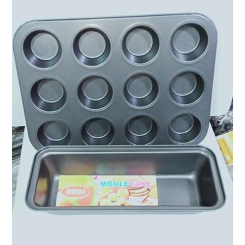 The 12-cup cupcake pan and long bread baking pan features nonstick inside and out to deliver great food release with quick cleanup