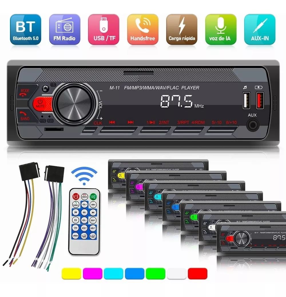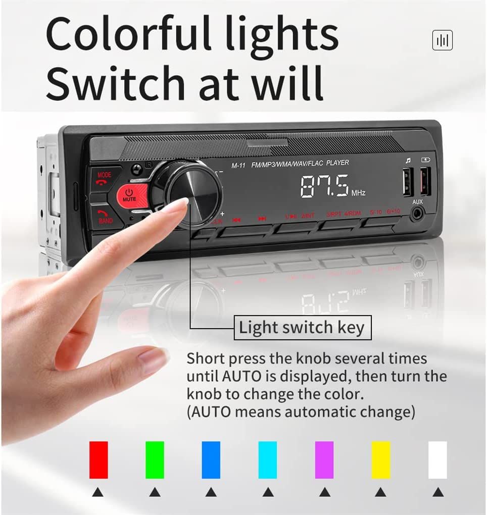 12V GM Color Color Lighting Car Retiner MP3 Bluetooth Card U Disk Player
