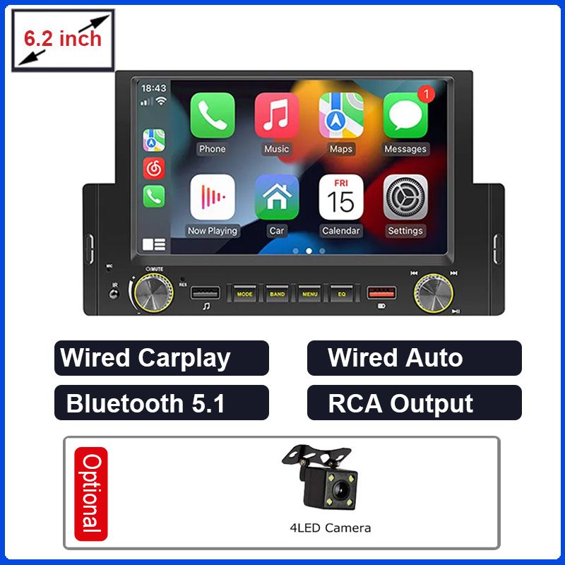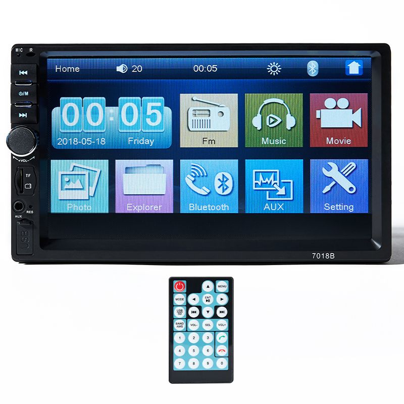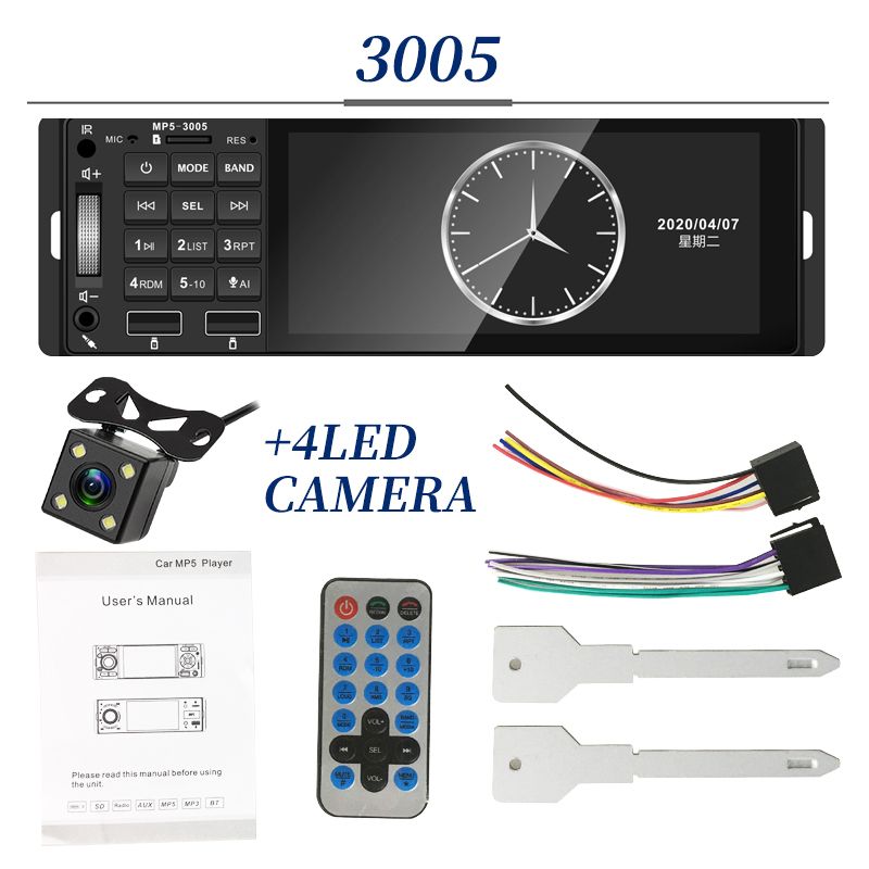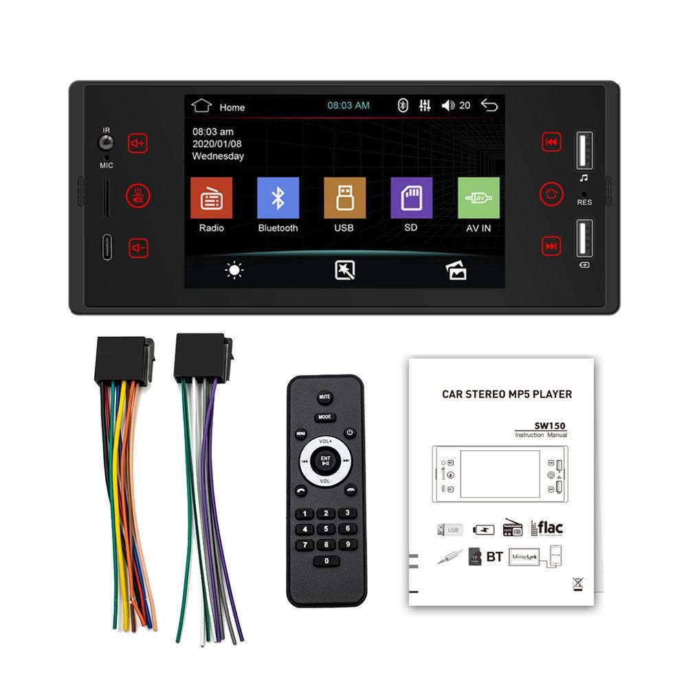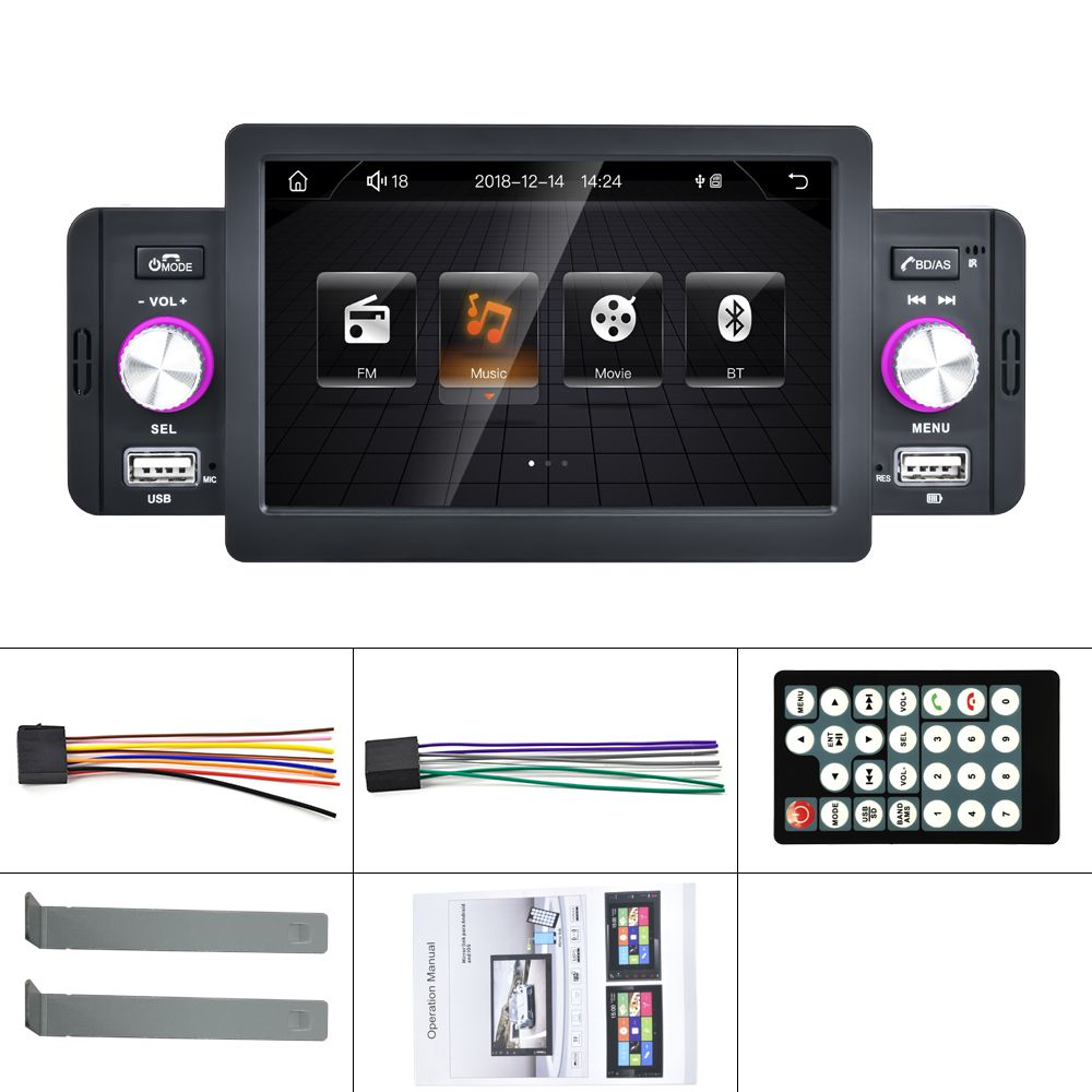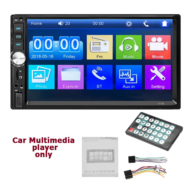 ** 3.8inch IPS screen (no touch screen) ** 7 color on back light ** function,free hand call and music ** MOSFET Amplifier:50Watts x 4 max power output ** FM range:87.5~108.0MHz(EU) ** Power-off with auto-memory store function under radio or TF/USB mode ** Front AUX in function, 15.One way Video output function, 16.TwoA audio output function, 17.One way video input function, Rear View Camera input function(without camera), Rear Microphone Input port ** Support the Audio playback format of MP3/WMA/WAV/FLAC/APP etc ** Support the Video playback format of RMVB/RM/VOB/MP4/MOV/AVI /3GP etc ** Package List: 1x MP5 Player 1x Power cable 1x Operation Menual 1x Remote control 1x Steering wheel control remote