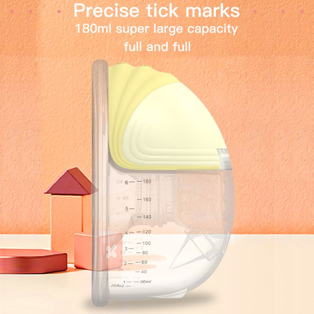 【Anti-Backflow & No Leakage】Adopts anti-backflow and seal system design, the wearable breast pump can prevent the breast milk from being contaminated and leakage. The breast shield can store 180ml milk.