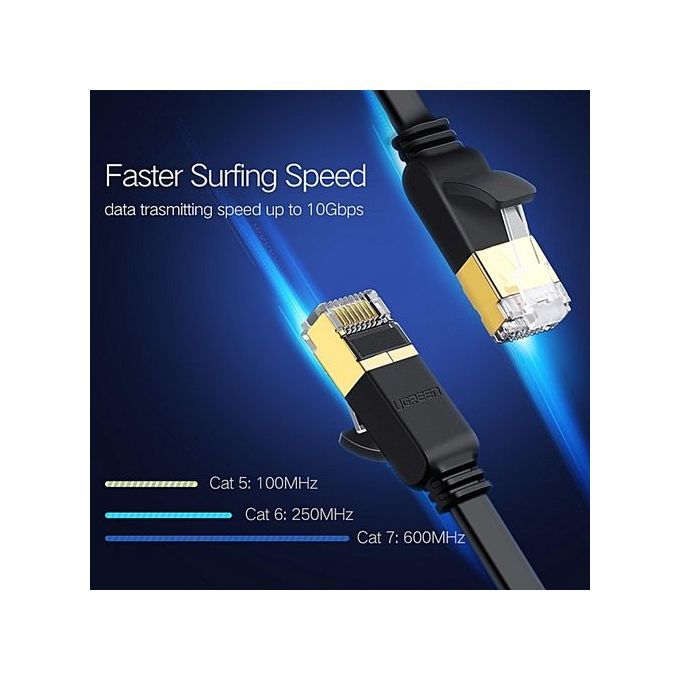 What In the Box1 xUGREEN Super High Speed RJ45 STP CAT 7 Flat Gigabit Ethernet Network Cable (1m)