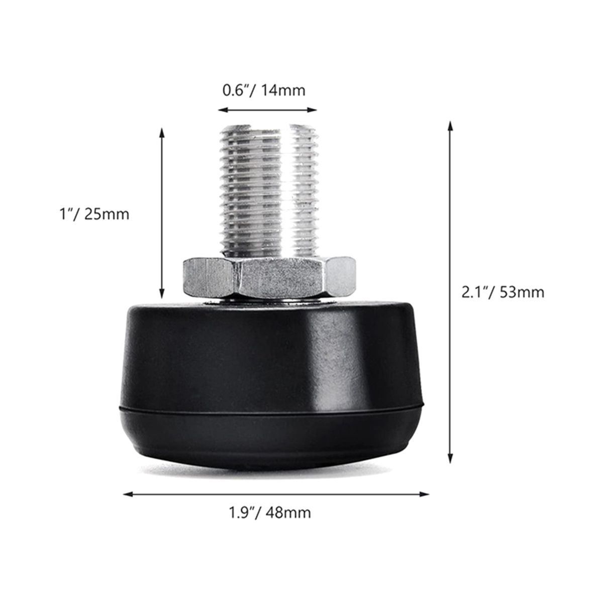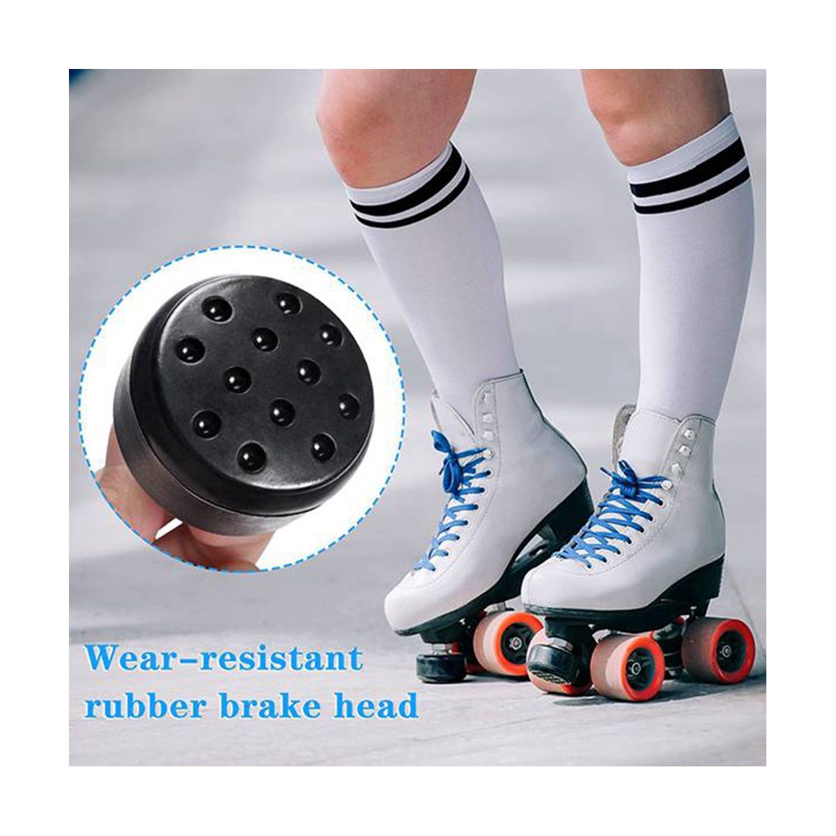 [Adjustable Toe Stops] - An adjustable 9/16 inch (14mm) bolt with nuts included through the centre which screws all the way in to the plate. Stem Length: 1 inch (26mm). Hardness: 85A.