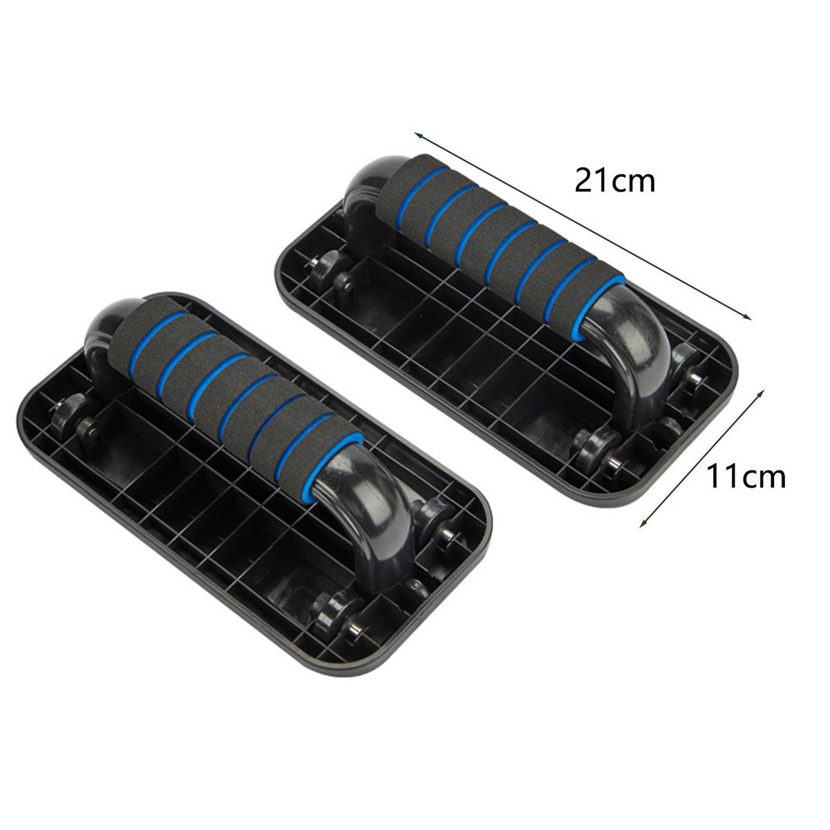 The length of this push-up bar is 21cm, the width is 11cm and the height is 8.5cm.