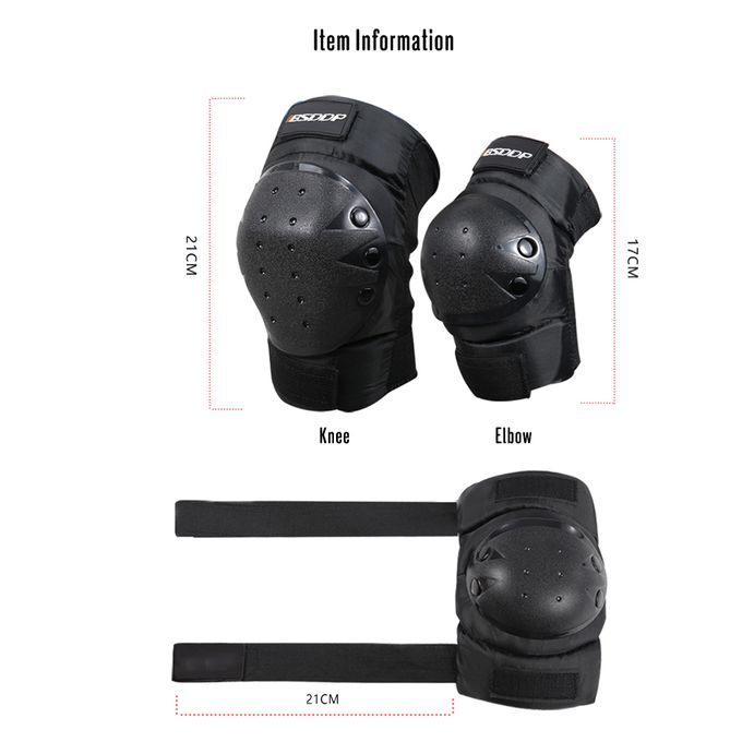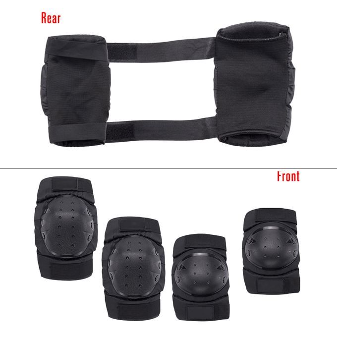 4pcs protective pads kit includes 1 pair of knee pads and 1 pair of elbow pads to protect your knees and elbows while you're doing sports. The pads are crafted from soft EVA padding and PE capsid to provide maximum protection against bumps and impacts, great for Motorbike/Motocross, Cycling, Skiing, Snowboarding, Skateboards.