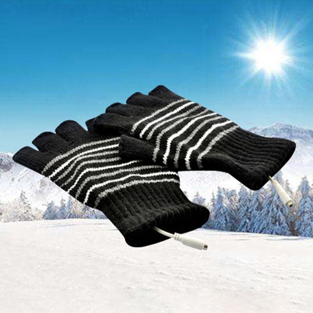 Buy 1 Pair Electric Gloves Knitted Warm Heated Thermal Gloves Black White in Nigeria