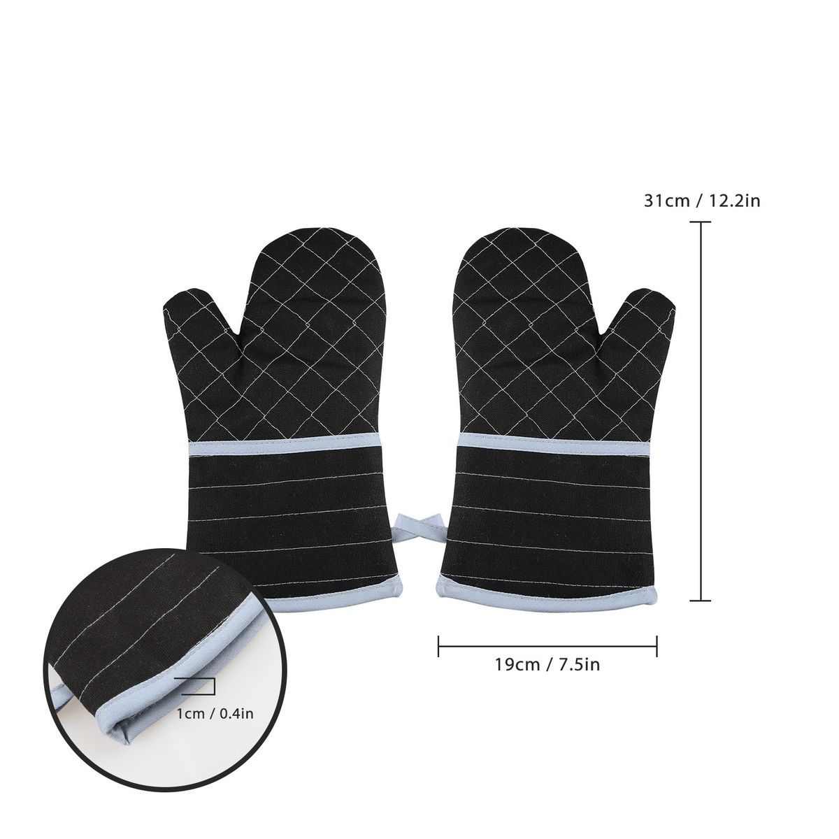 Our 12.2-inch extended oven mitts with heat insulation up to 260℃/500 deg;F keep your hands and forearms from heat, sudden hot oil splashes, and steam scalds.