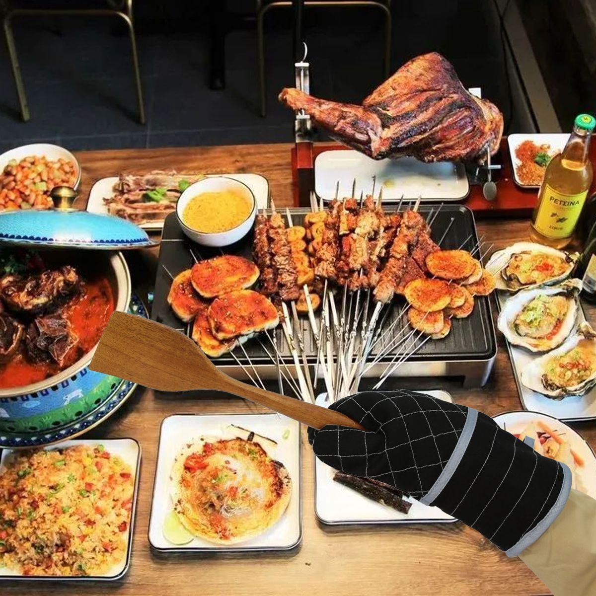 [WIDE APPLICATIONS]: Can be widely used for ovens, microwave ovens, skillets, barbecues, BBQs, iron plates, taking out containers and foods heated in iron pans, handling frozen-products, etc.