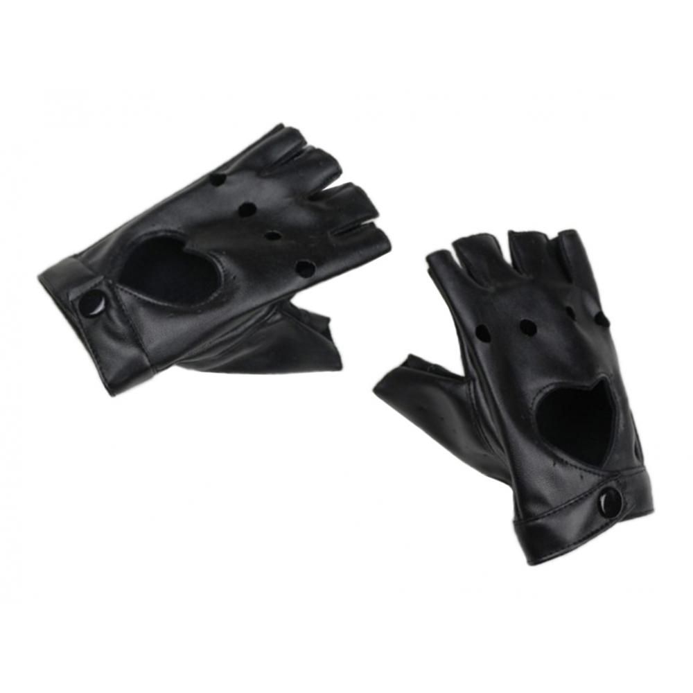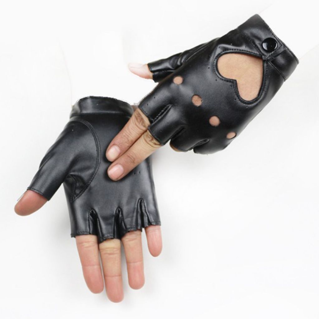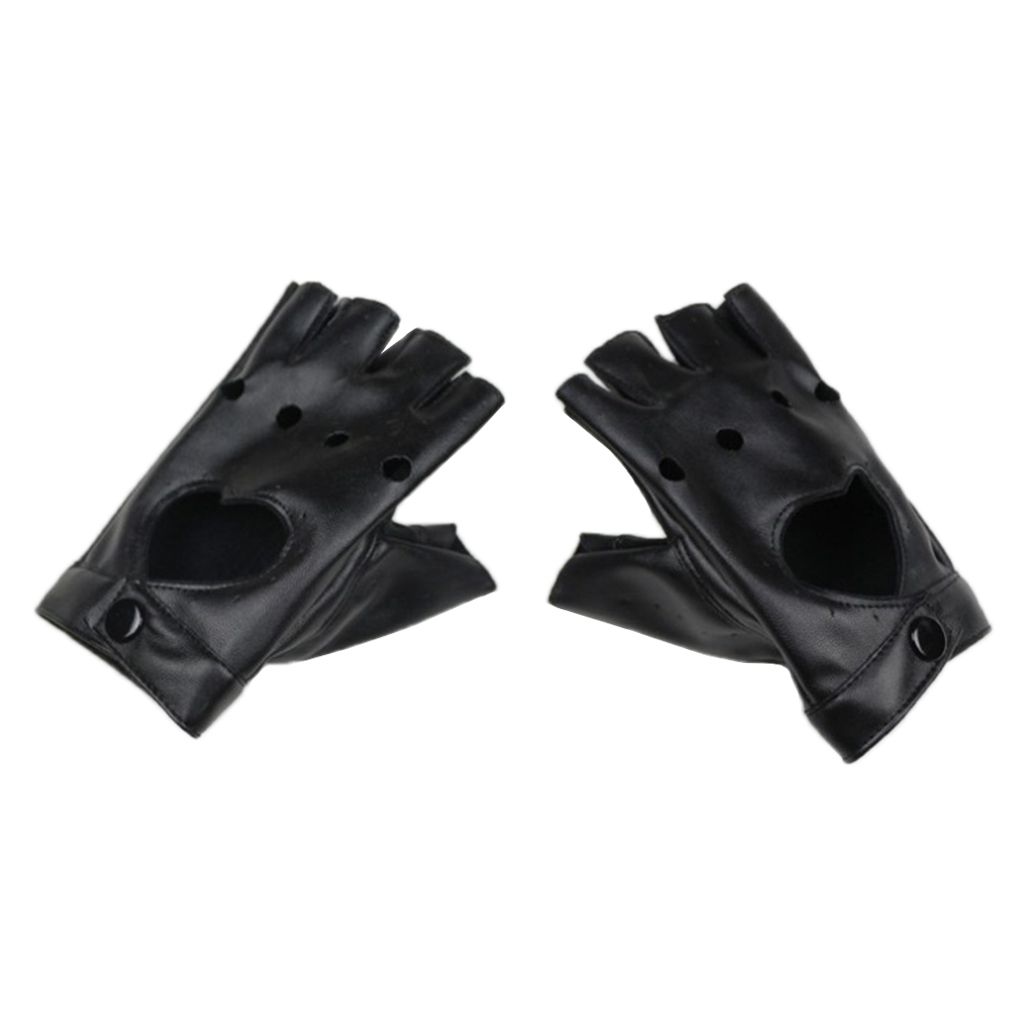 Wrist snaps design fits different sizes of hands and easy .Half finger , decorated with hollow holes and heart design, comfortable and breathable, show off your fashion sense.These would be a little bit tight at first, it would be more and more fit with the extension of wearing time.Perfect for Halloween costumes, dancing, performance, Hip Hop, pole dancing, cosplay, party concert, motorcycle bike car driving and so on.Material: PU leather, lightweight and durable, soft and .