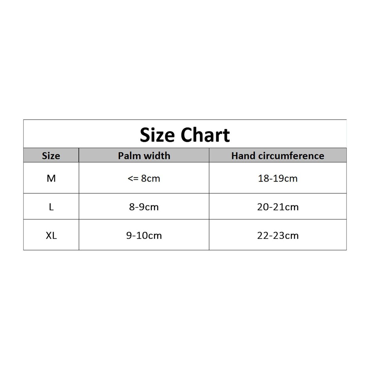 XL Palm Width: 9cm-10cm/3.54"-3.94", Palm Circumference: 22cm-23cm/8.66"-9.06" (Approx.)