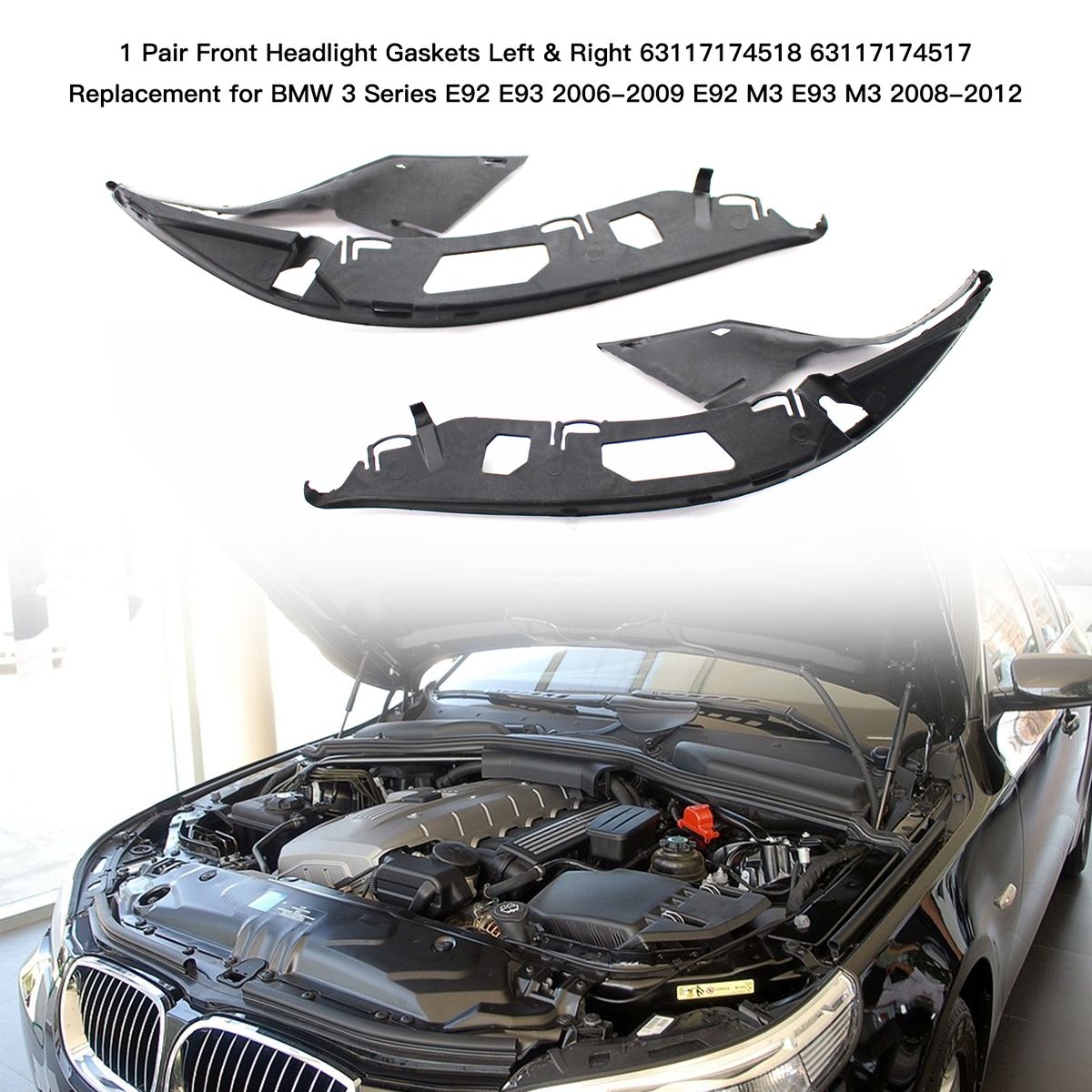 1 pair headlight gaskets, left amp; right, replacement for BMW E60 525i 528i 530i 535i 545i 550i 2004-2010.