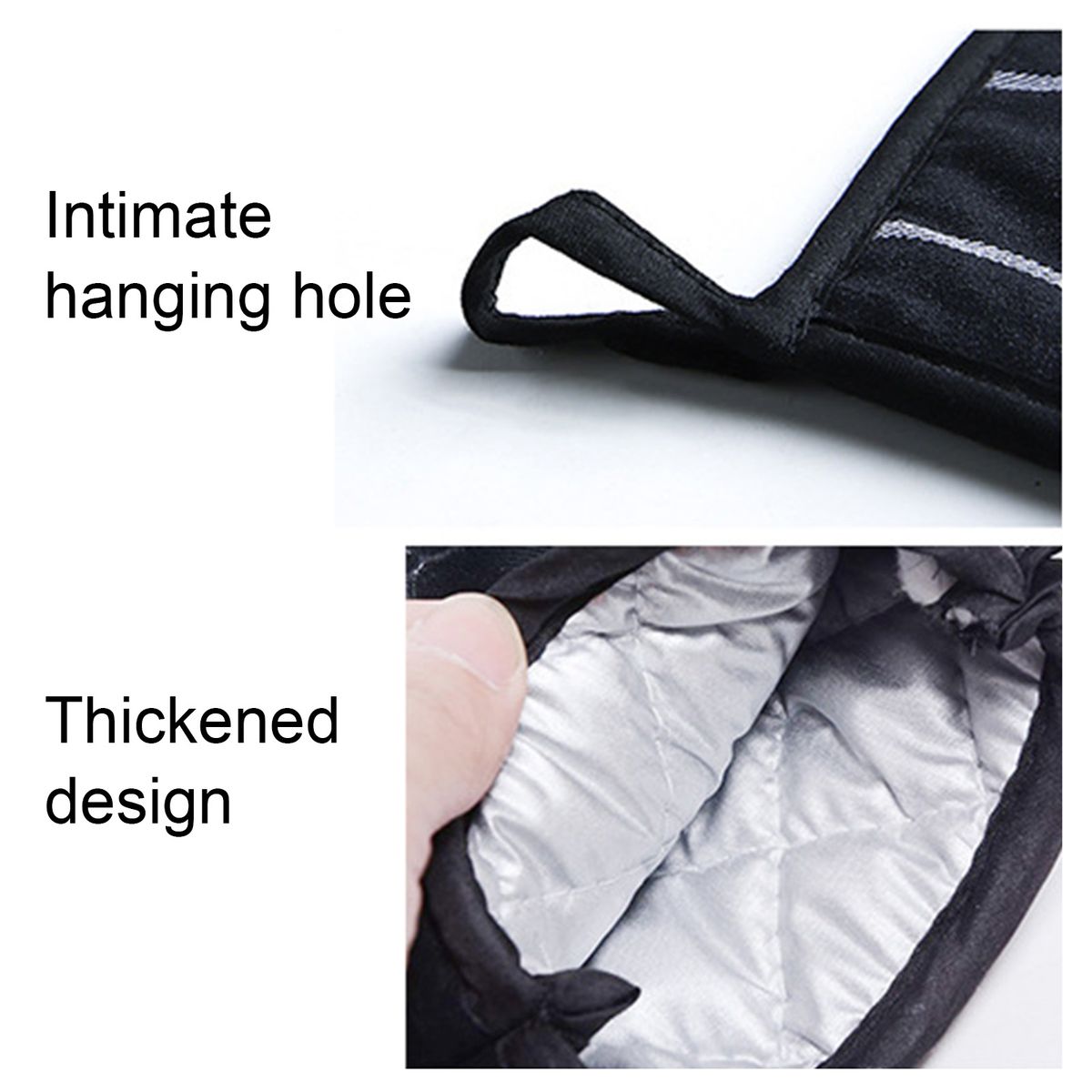 Compared to similar products on the market, each oven mitt is equipped with a hanging loop, which brings you more convenience to store, and no need to worry about taking up too much space.