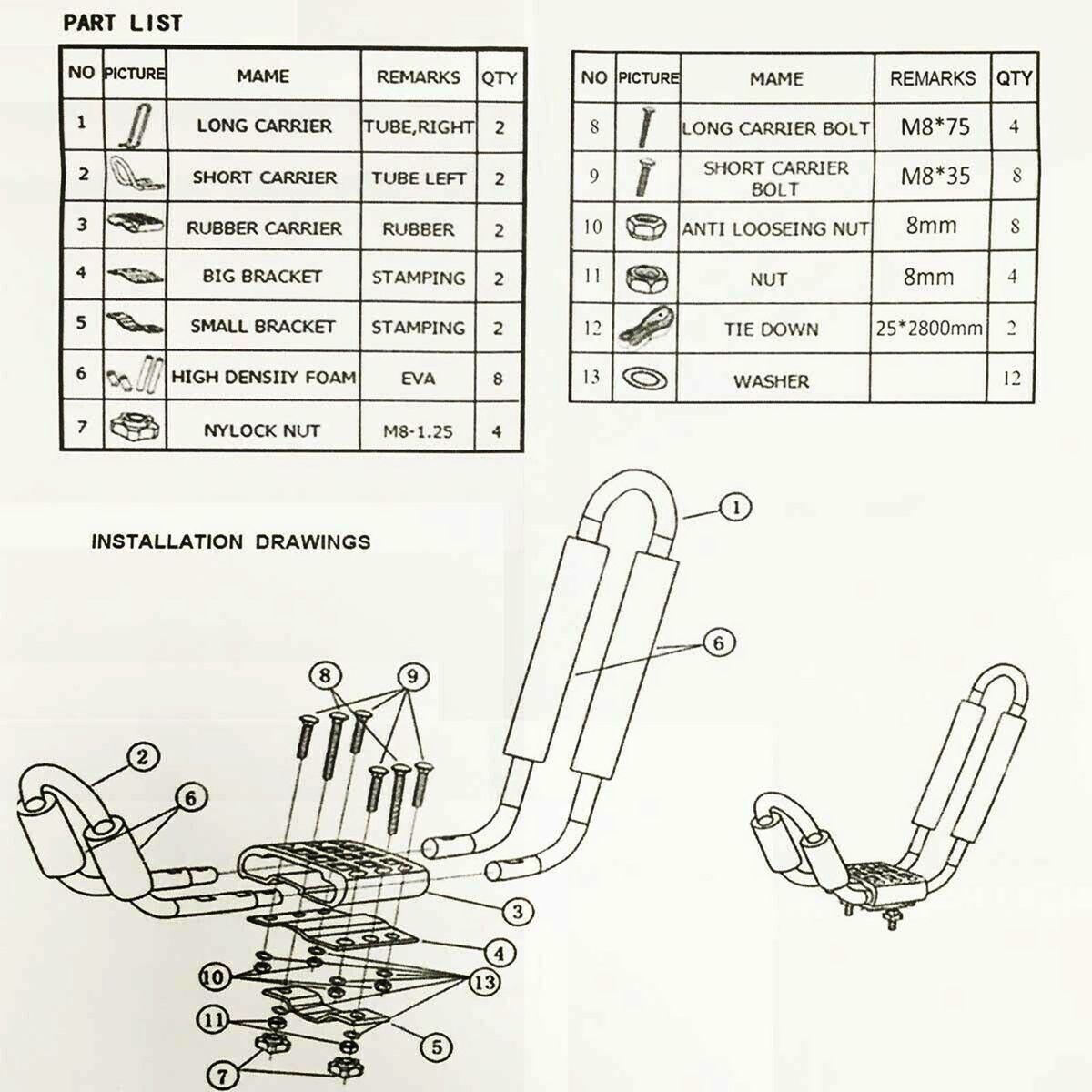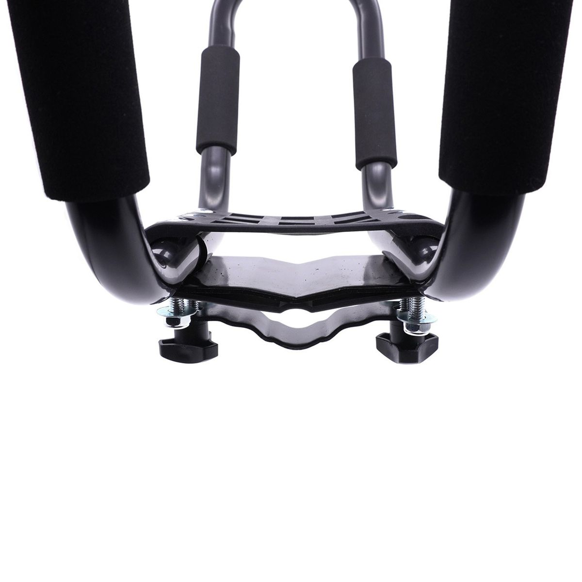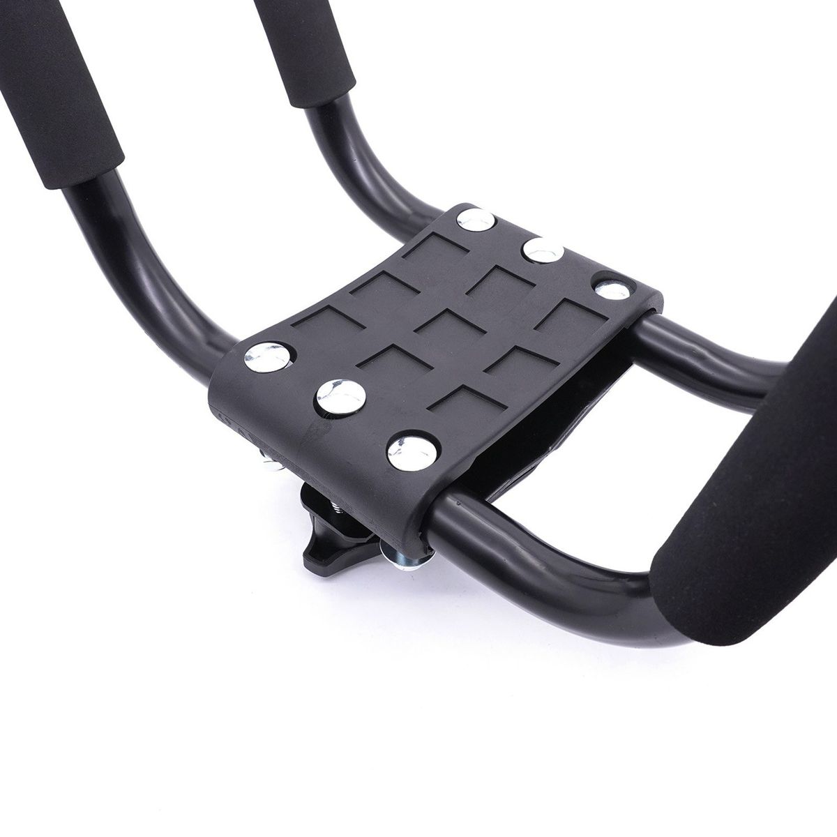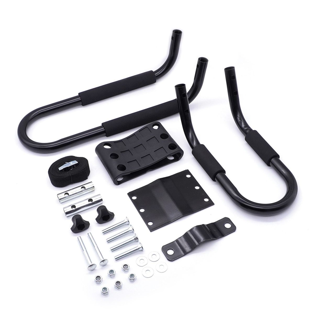 Steel design with adjustable padding for carrying strength and kayak protection.