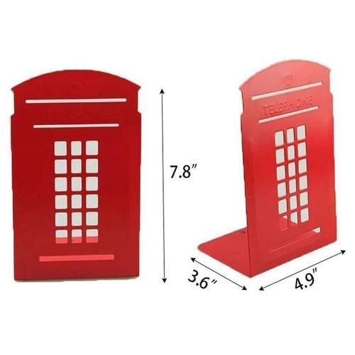 1 Pair London Telephone Booth Design Anti-Skid Bookends Book Shelf Holder Stationery (Red)
