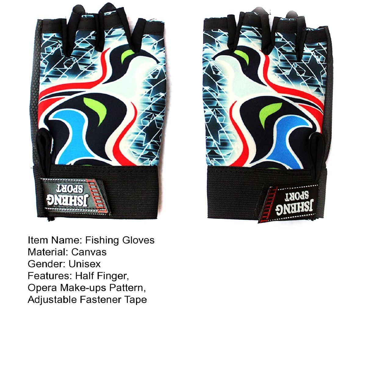 Features: Half Finger, Opera Make-ups Pattern, Adjustable Fastener Tape