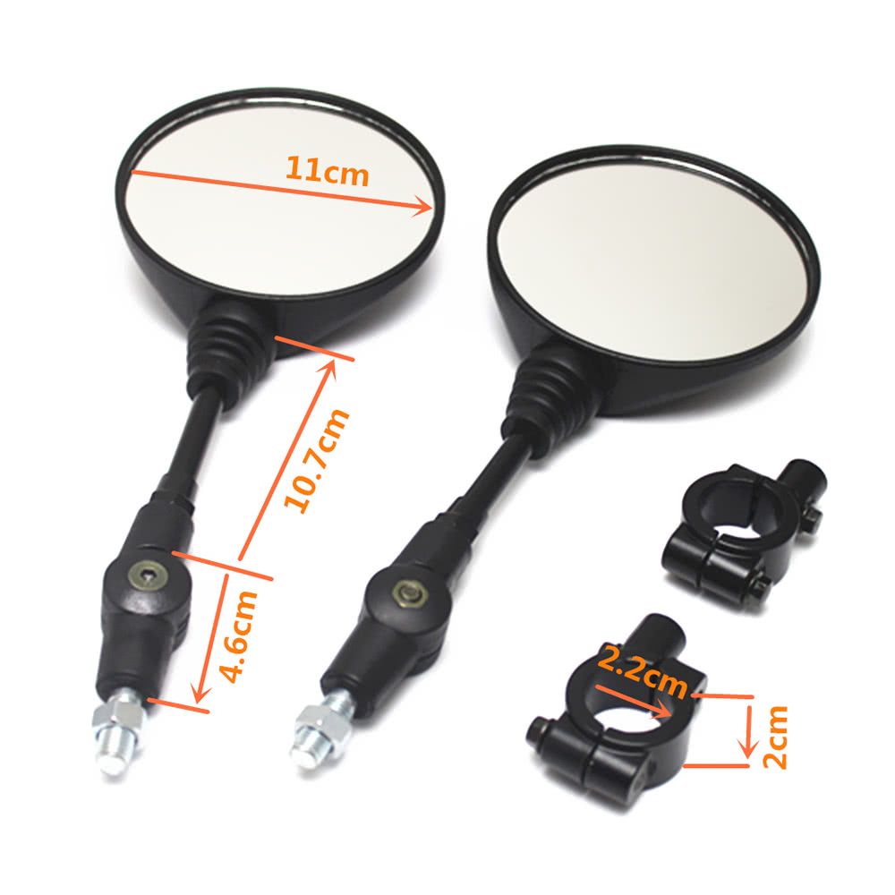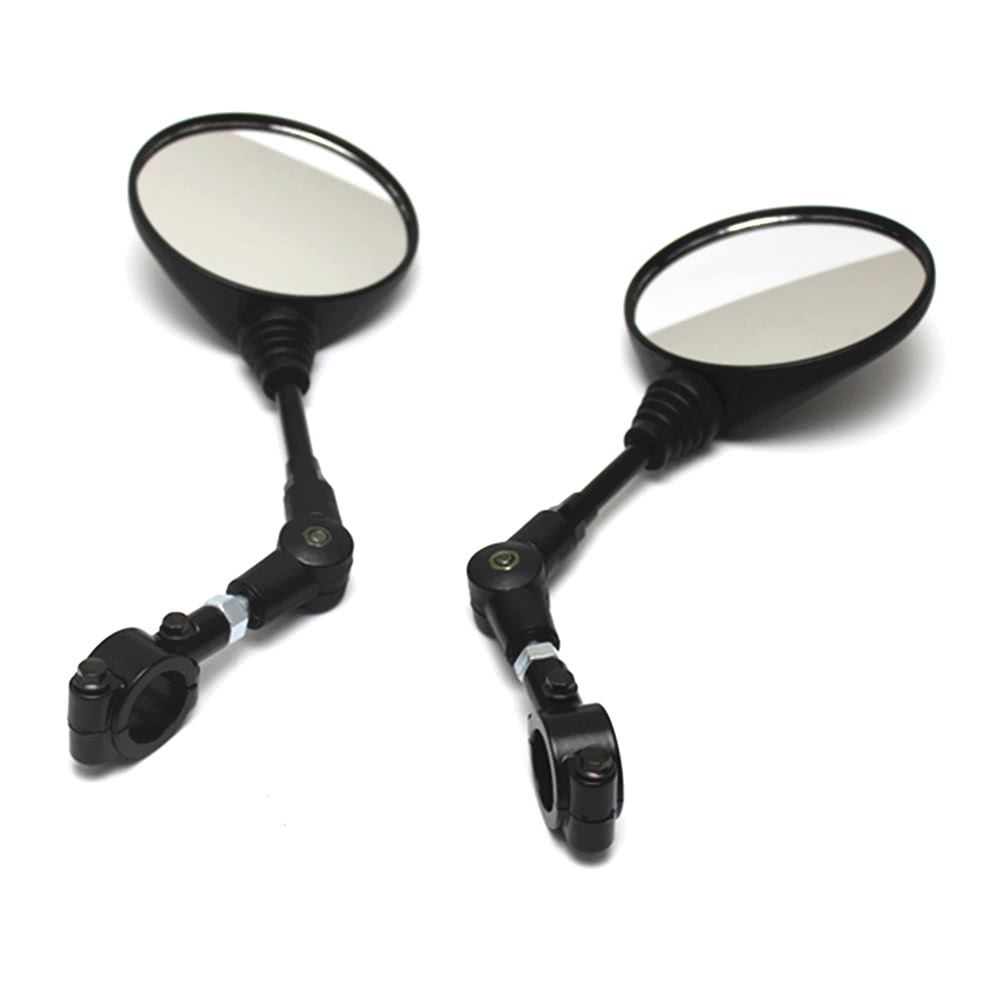 Do you want to ride your motorcycle with style? If so, we have this uniquely-designed and cool rearview mirror set. With clear and round glass, they are able to foldable and collapsible, offering you a clear vision and safety on both day and night. Buy them to have a new and wonderful riding experience.