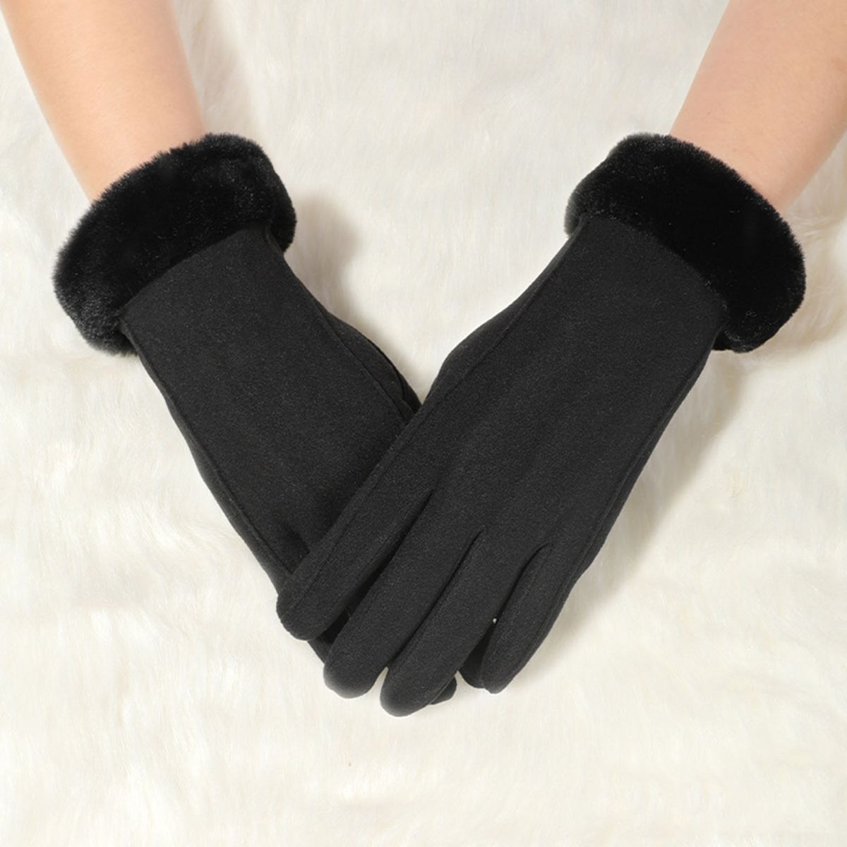 Winter gloves adopt skin-touch plush lining design, which can bring you extra warmth and would not cause any skin stimulation. Fluffy cuffs design can prevent the cold wind from pouring in.