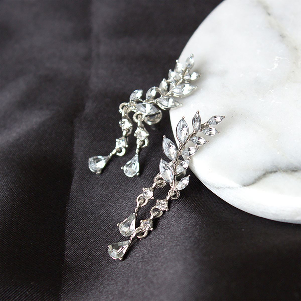 Featuring leaves shape design with water-drop tassels and shiny rhinestone inlaid, it is beautiful.