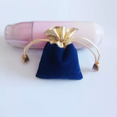 Buy 1 Pc Velvet Bead Drawstring Jewelry Pouch - Blue & Gold - 12 by 9cm in Nigeria