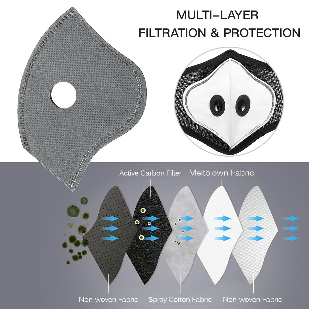 5-ply active carbon filter isolate most non-toxic dust,pollen,fumes,common airborne irritants and other non oil based particles.