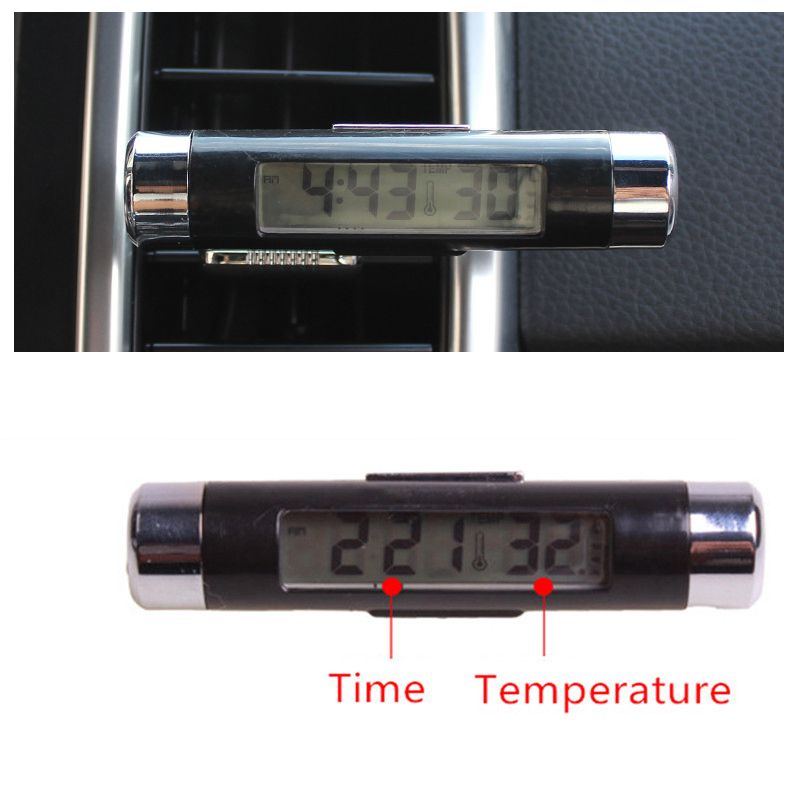 1X 1 Pcs Portable 2 In 1 Car Digital LCD Clocks & Temperature Display Electronic Clock Thermometer Blue Backlight Car Accessories