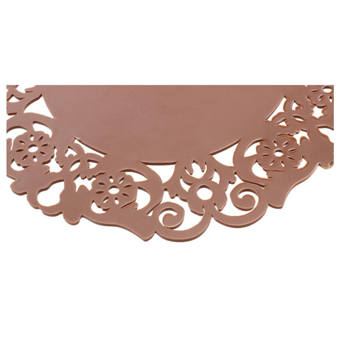 Protects surfaces of hot and cold drinks with retro permeable crochet top drinks silicone coasters.