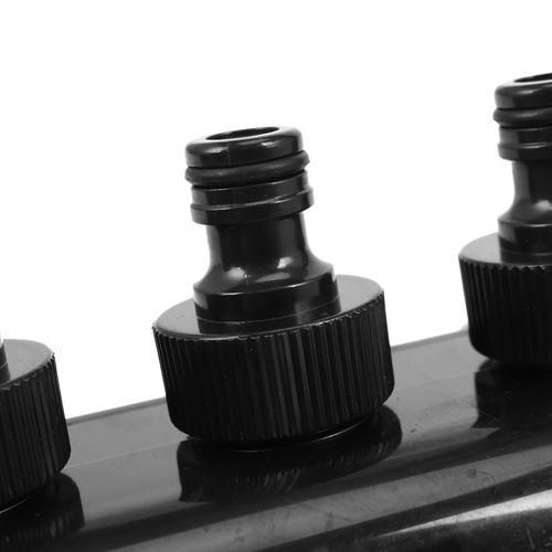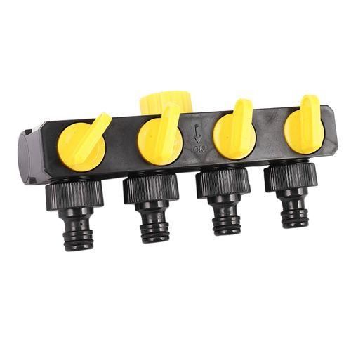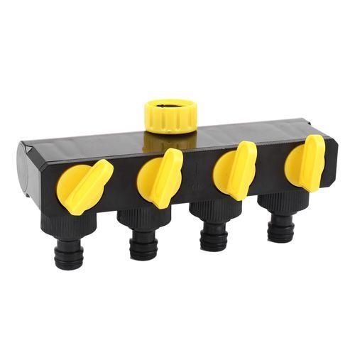 Converts a single tap into 4 outlets. Includes shut-off valve to each outlet. 3/4 inch BSP threaded inlet to fit most