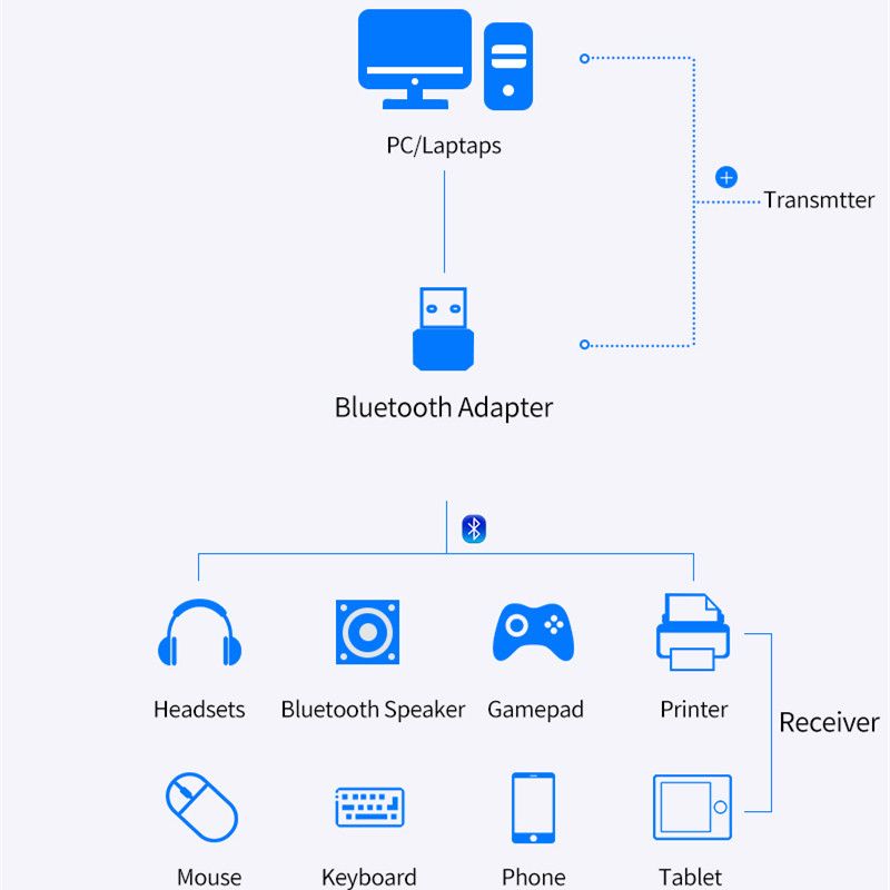 1X NEW 1 PCS USB Adapter Bluetooth 5.0-compatible Transmitter Receiver Desktop Laptop Keyboard Printer Receiver