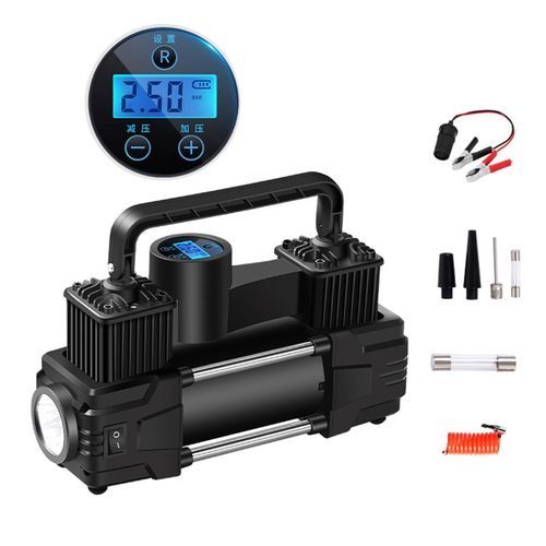Equipped with a complete set of inflation nozzles, which can be used to inflate tires, inflatable boats, air cushions, inflatable toys, balls and many other purposes.