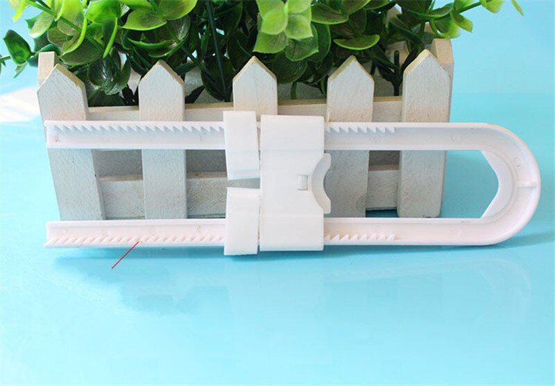 Specification: Item name: U shape children safety lock Material: ABS Size: length 18cm x width 4.5cm/7.08 x 1.77in (length is adjustable) Color: white Notice: 1.Please allow slight deviation due to manual measurement. 2.The color may have different as the difference display, please understand.