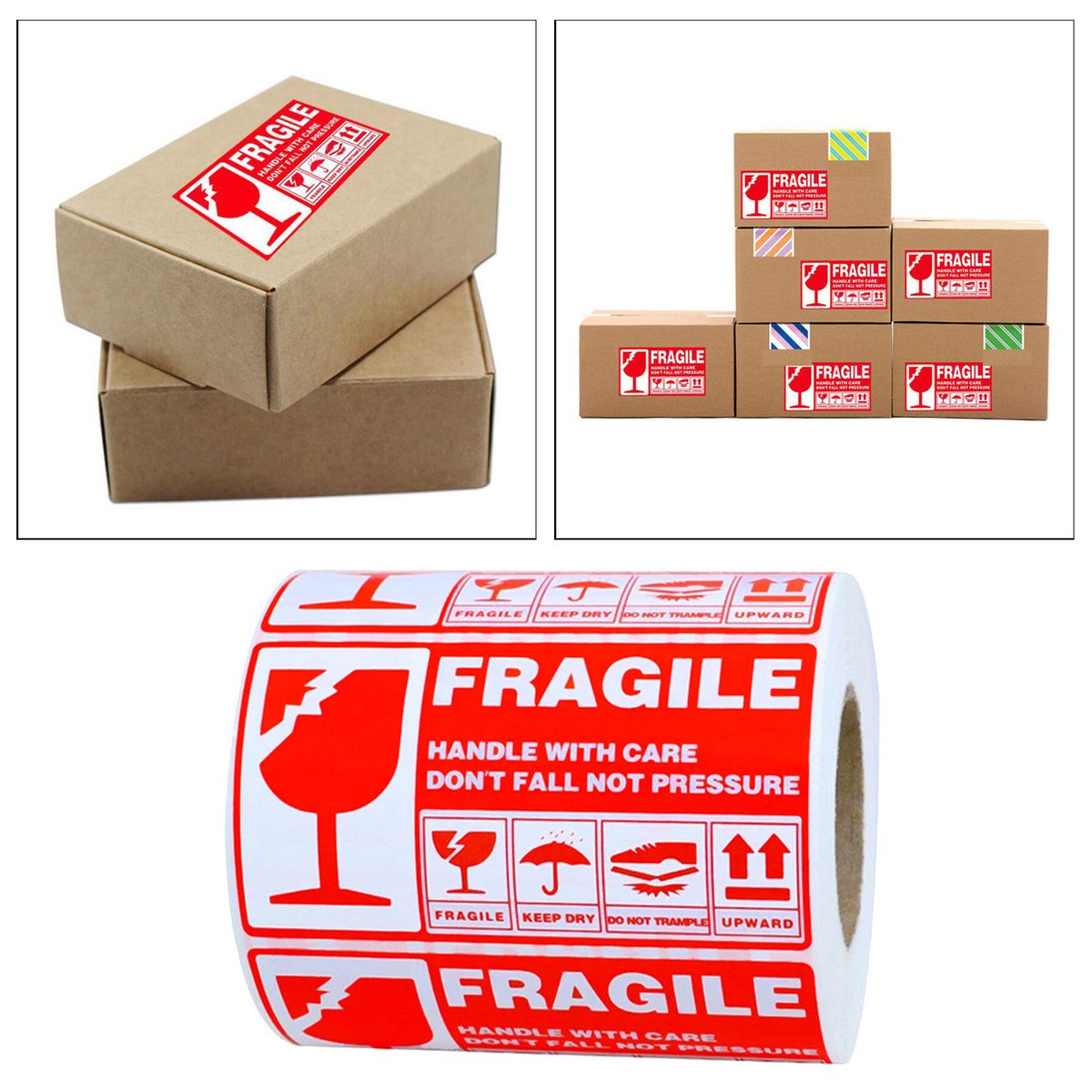 With clear fragile handle text and self-adhesive backside that can help people to know what's inside so they can be careful with the boxes.