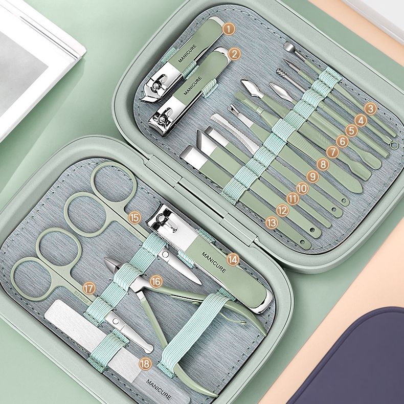 2. 18 piece manicure pedicure grooming set is perfect for keeping your grooming tools, shellac, acrylic nails together.