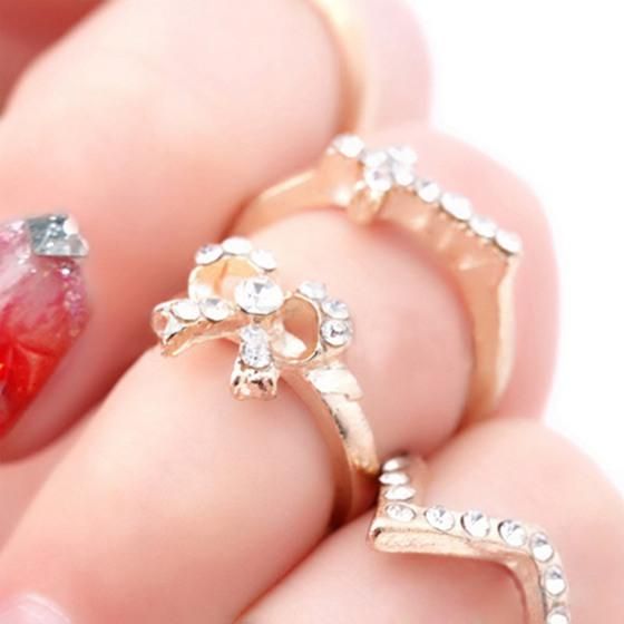 This rhinestone bowknot knuckle midi mid finger tip stacking rings make your sweetheart's promise to keep it all his or her life.