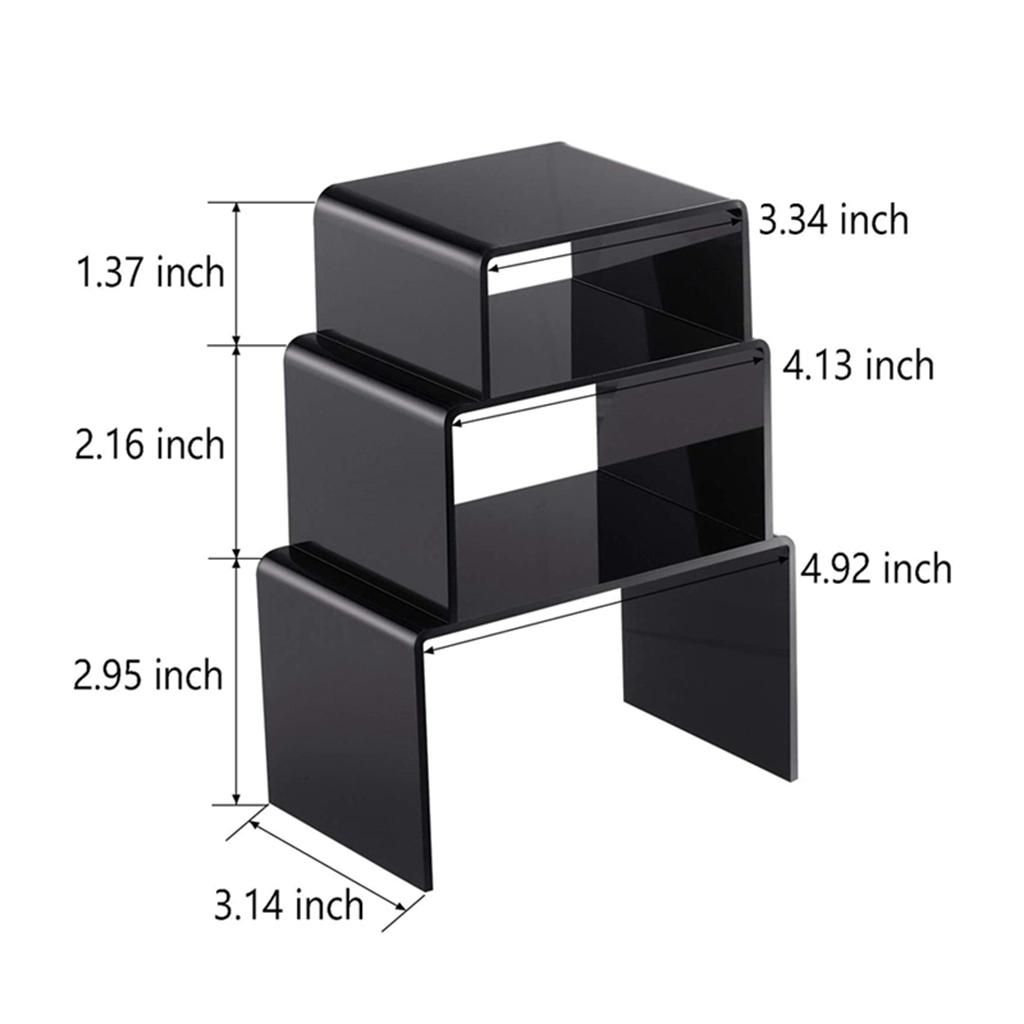 Package includes: 1 set black acrylic display rs, contains 3 pieces display rs in 3 different sizes