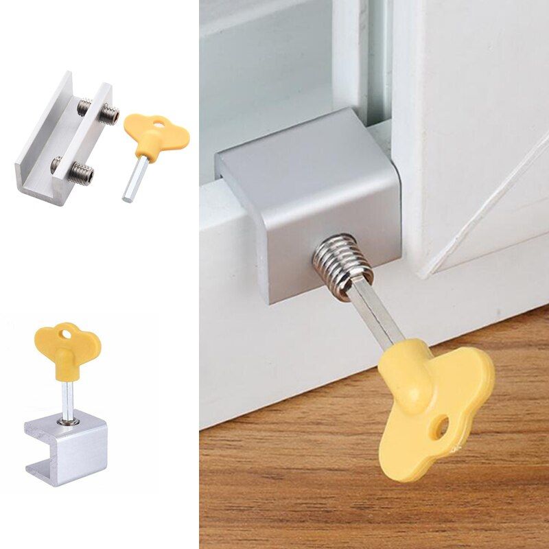 1X 1 Set Adjustable Sliding Window Locks Stop Aluminum Alloy Door Frame Security Lock with Keys Home Office Safety window Lock