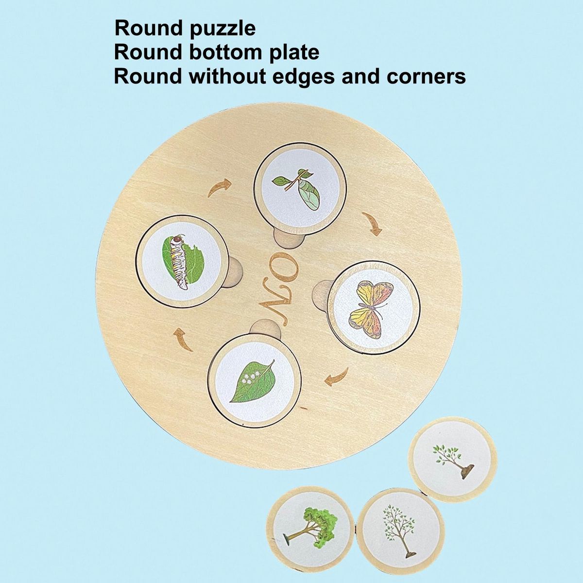 It is a wooden life growth cycle toy that is round and delicate, smooth and fine, without burrs, and will not scratch the child's hands; it is designed with grooves and is very easy to hold.