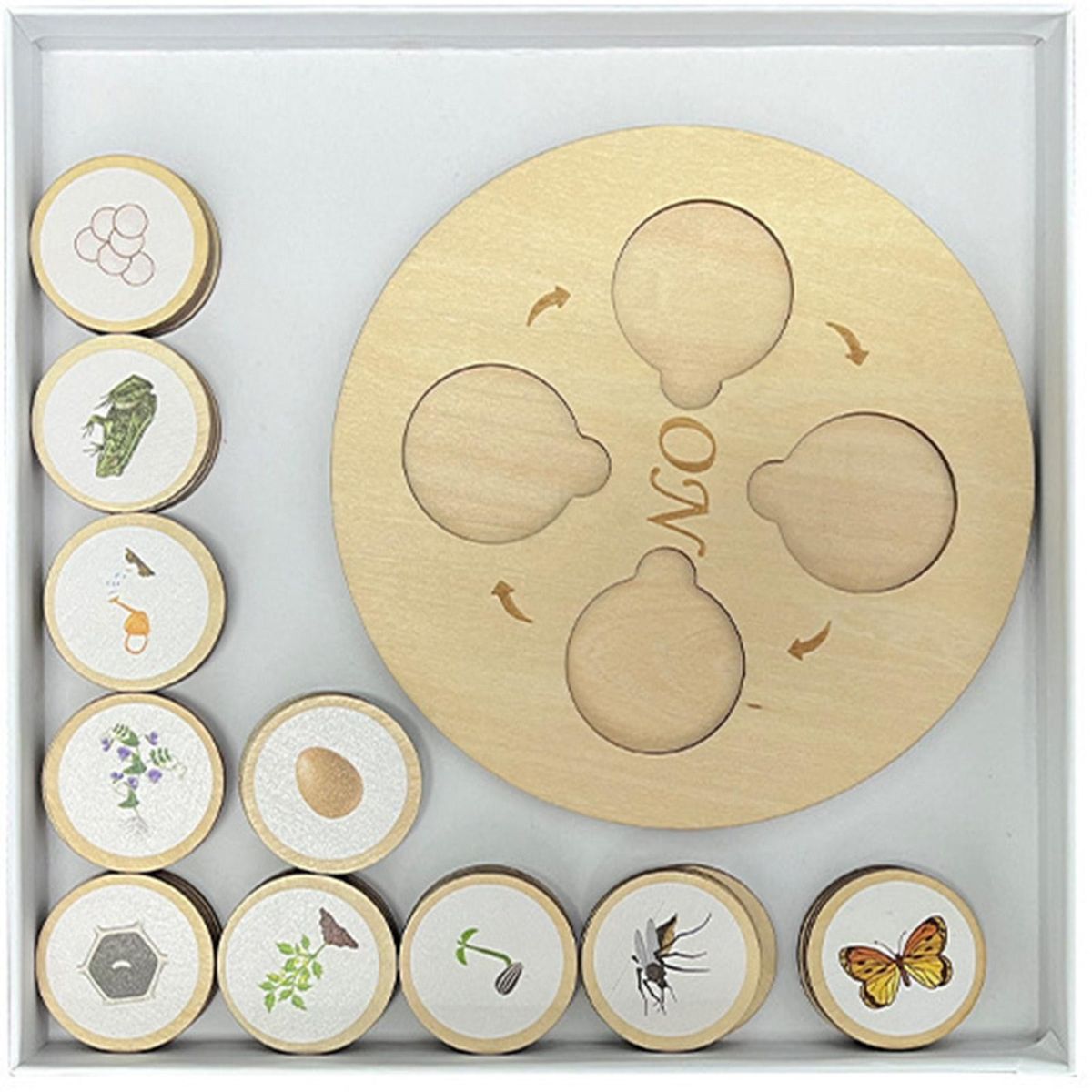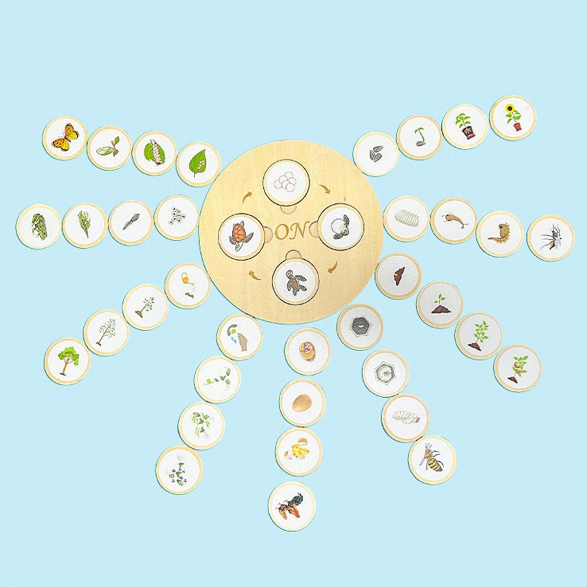 With this life growth cycle toy you can improve your child's logical thinking skills and hand-eye coordination. There are plant and animal life cycle cards to help children understand the process of life formation.