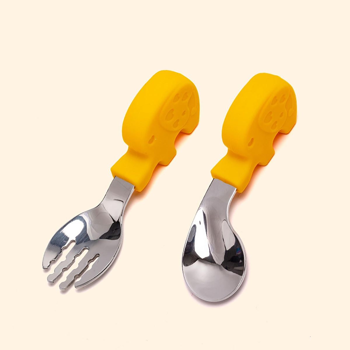 With cartoon animal design, this baby training fork spoon is cute and creative, and more importantly, its ergonomic design allows even babies with weak grip or small hands to hold this feeding spoon effortlessly without dropping it easily.