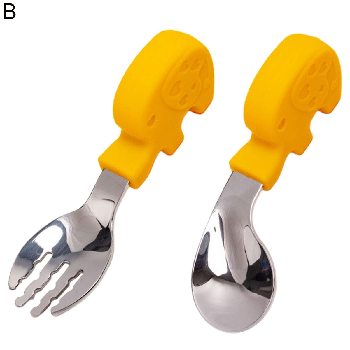 Using this baby training fork spoon can promote self feeding and train the eating ability for children, because it is easy and convenient to grip with its bending handle, which is suitable for most kids to use.