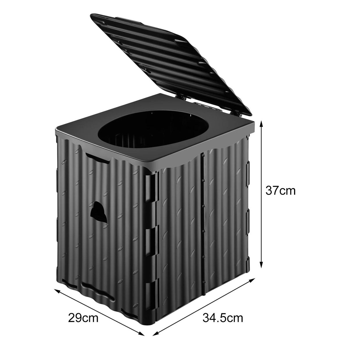 The length of this portable toilet is 34.5cm, the width is 29cm and the height is 37cm.