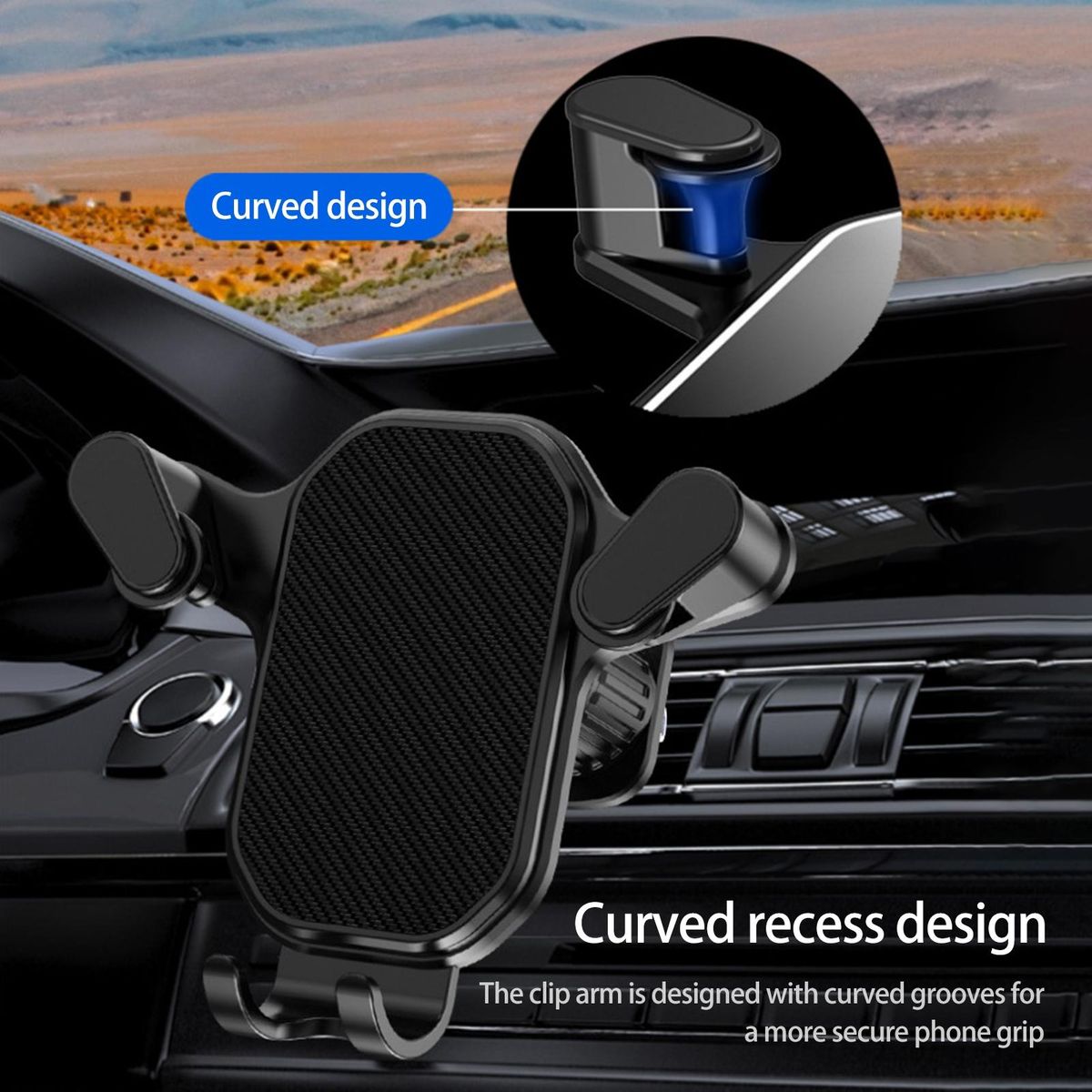 Featuring a triangular polygonal and curved recessed clip arm design, this phone mount provides stable support for your phone, locking it firmly in place even when braking sharply, over bumps, and around corners.