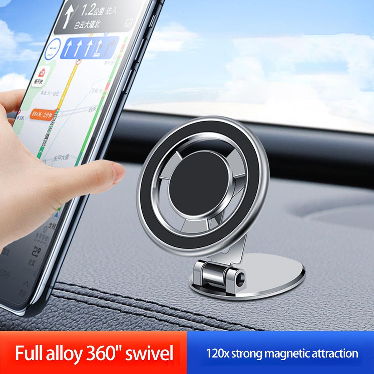 Using a strong magnetic adsorption design, this car phone holder is solid support, non-slip, and it does not gear signal, convenient for you to easilyand take calls hands-free while driving.