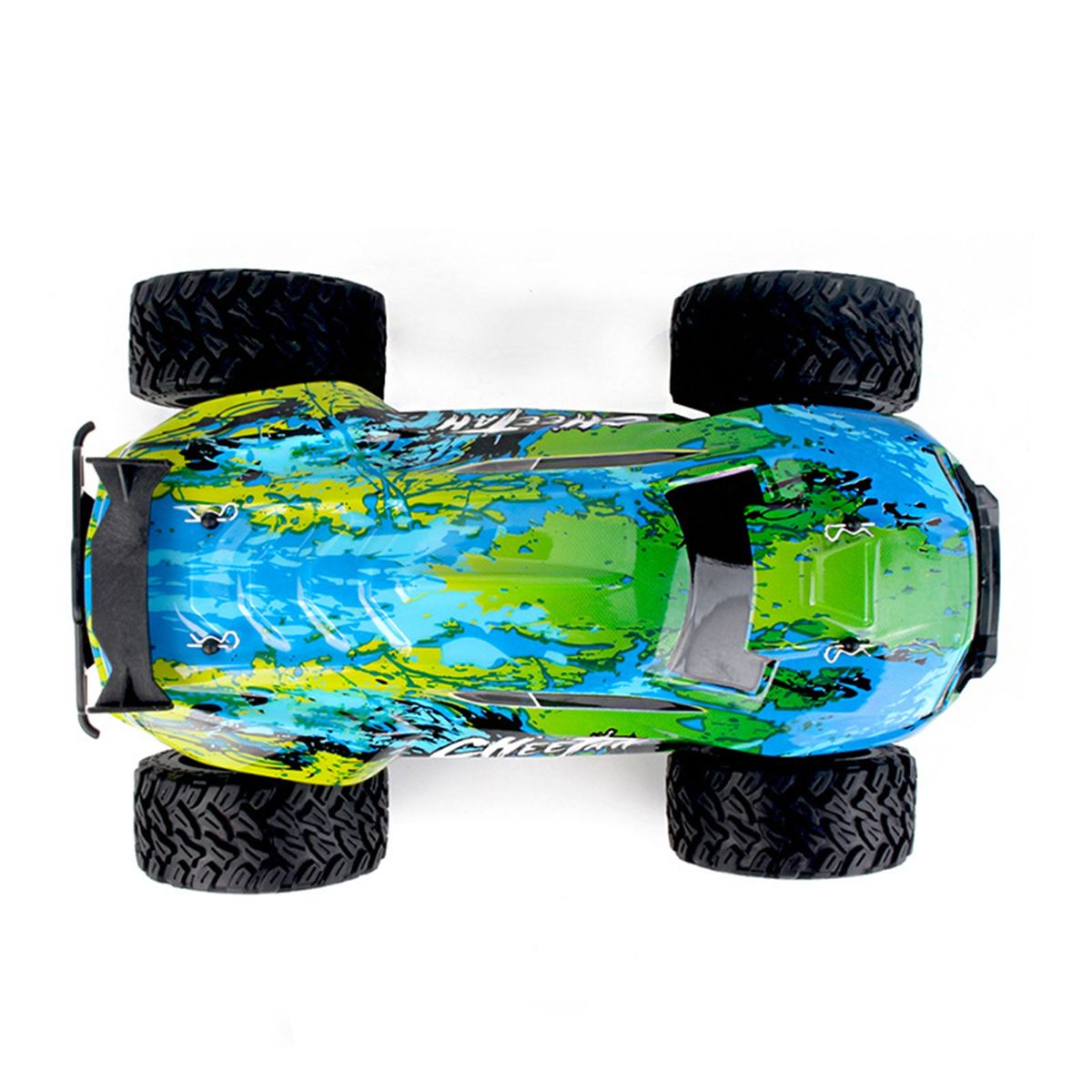 With bump pattern large tires, high chassis, the simulation off-road racing car is anti-skid shock absorption. Remote control operation is more realistic, and Good climbing performance and crash worthiness enable it to climb complex road conditions.